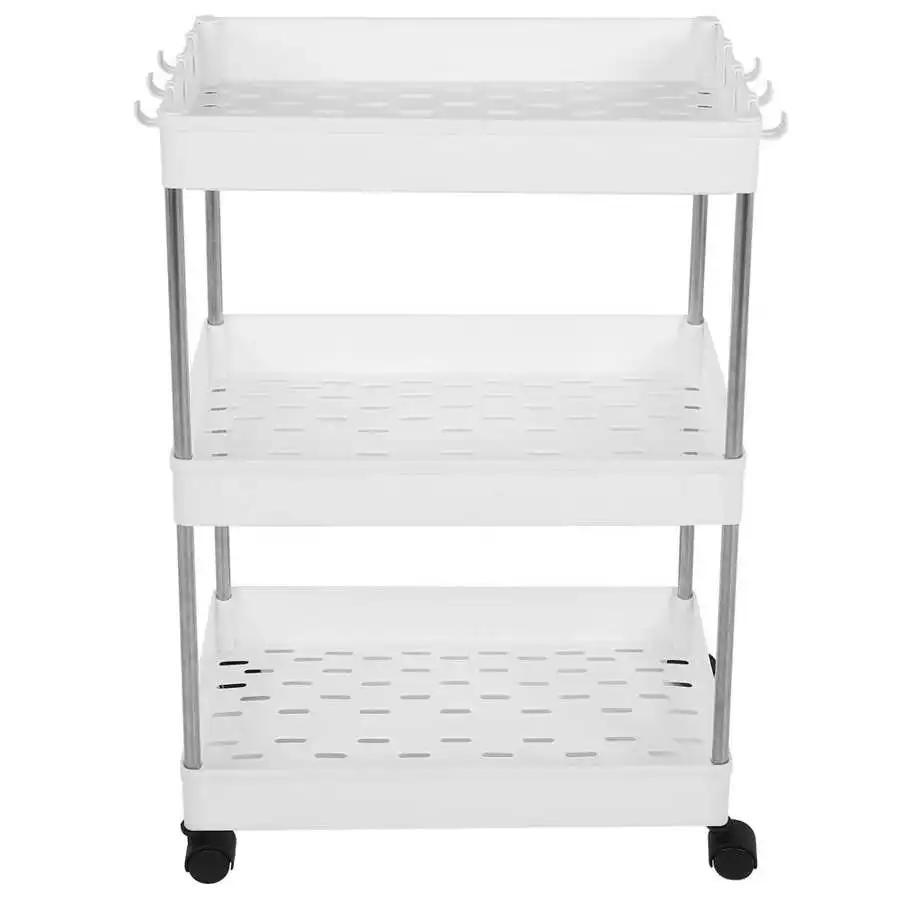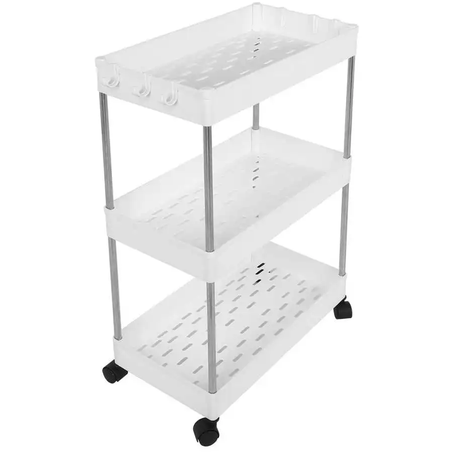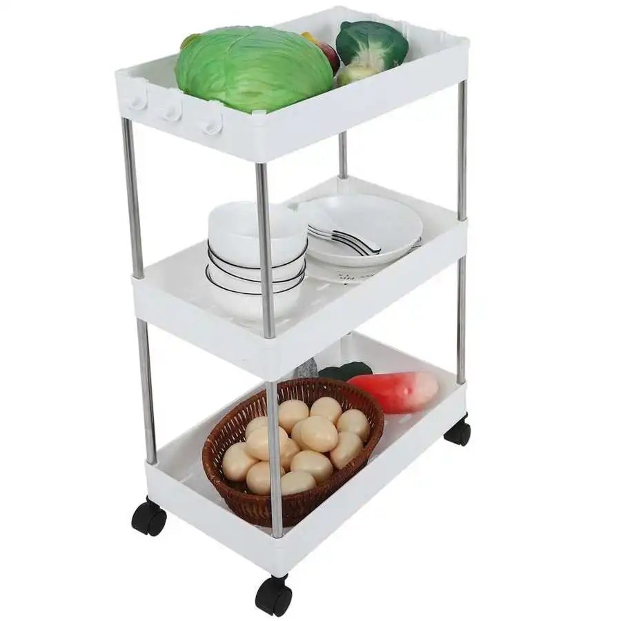 3/4 Tier Storage Organizer Rack Movable Kitchen Bathroom Shelf Metal Rolling Trolley Cart Basket Stand Wheels Save Space Holder