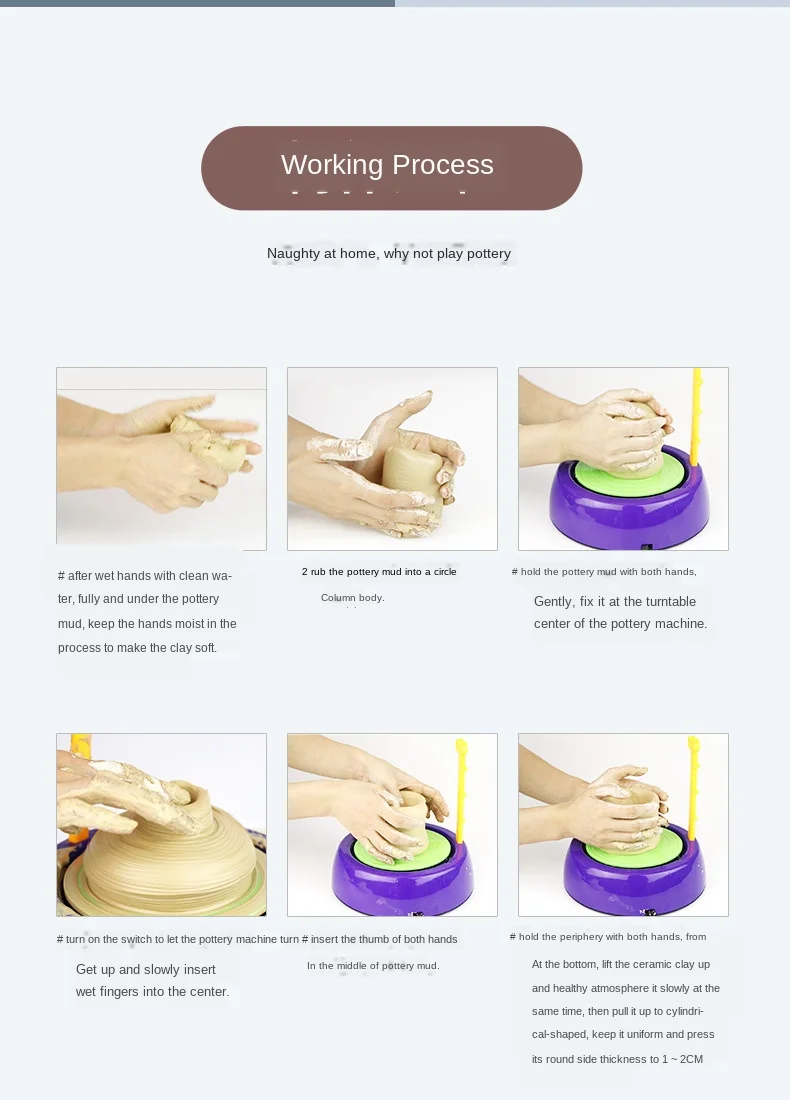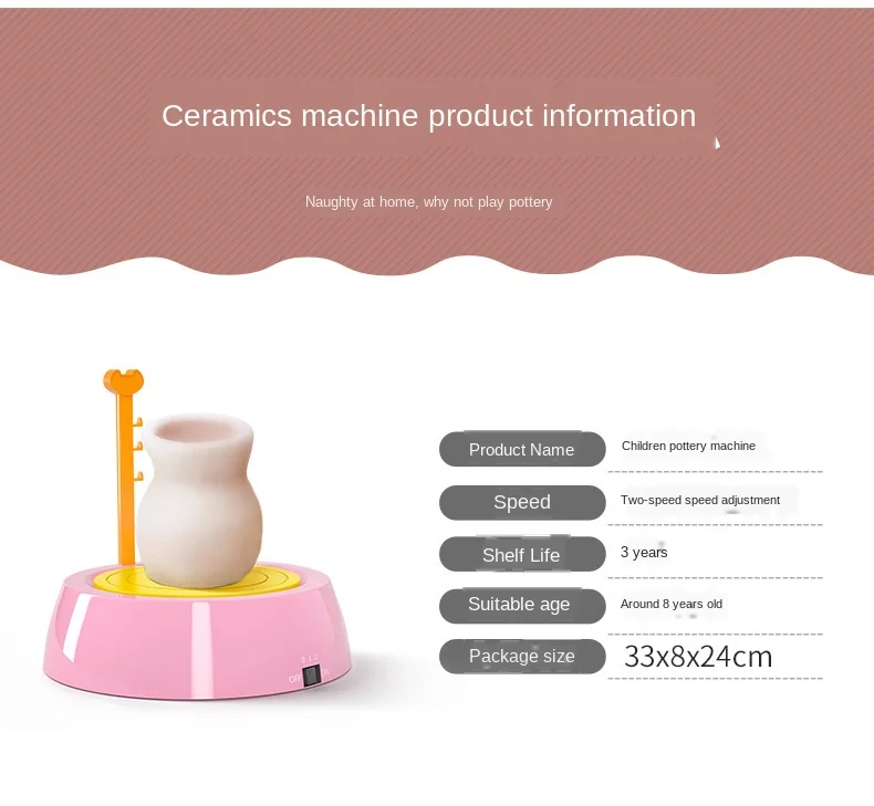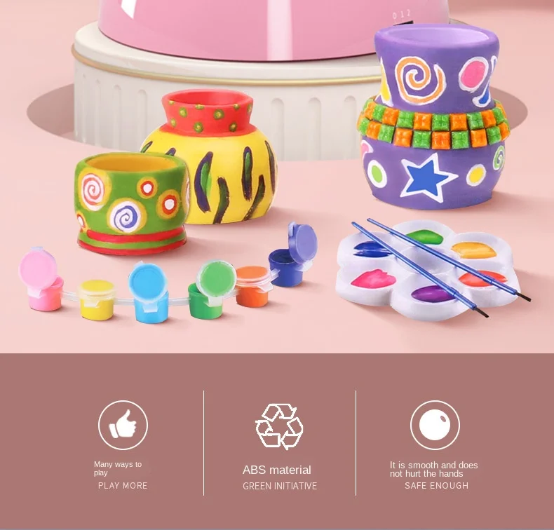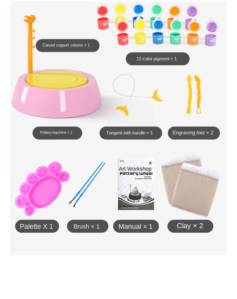 DIY Ручная Керамическая гончарная машина, Детские ремесленные Игрушки для мальчиков и девочек, мини гончарные колеса, художественные ремесла, игрушки для детей раннего развития Особенности: Креативная и развивающая игрушка: Эта гончарная игрушка дает вашим детям возможность в полной мере выражать себя своими творениями и фантазиями. Они могут сделать свои собственные предметы искусства или с помощью этих удобных для использования керамических инструментов, это помогает детям иметь здоровую жизнь, делая искусство. Безопасен для детей и гарантия качества: синтетическая глина, которая содержит меньше микробов, чем Органическая глина. Соответствует ASTM D-4236. Отлично подходит для возраста 8 +. Легко использовать для сухой на воздухе глины, не нужно обжигать. Очень Забавный способ для вашего ребенка играть с глиной, он может настроить глину, используя уникальные инструменты для лепки. Полная гончарная Студия: включает в себя все, что вам нужно для настоящего гончарного опыта! Набор включает в себя керамическое колесо, палитру, кисти, режущий шнур, инструменты для лепки, иллюстрационные инструкции и идеи. Также работает от 3 батареек (не входят в комплект). Материалы высокого качества: эти аксессуары для инструментов изготовлены из материалов (без бисфенола и ПВХ) и без запаха. Он прочный и не легко сломается. Он имеет гладкую поверхность, безопасен для малышей и прошел испытания на безопасность. Он обеспечивает безопасную игровую среду для ваших малышей. Настоятельно рекомендуется снять батареи перед стиркой. Спецификация: Состояние: 100% новый Возраст: рекомендуется для детей 8 лет и старше Упаковка товара: подарочная коробка Материал изделия: пластик, глина, пигменты Цвет: синий, розовый Основание: около 21,5x21,5x22 см (8,4x8,4x8,6 дюйма) Питание батареи: (не входит в комплект) Пакет включает в себя: 1 х гончарный круг 1 х режущий шнур 2 x инструменты для лепки Палитра-1 шт. 2 х кисти 1 x Руководство по эксплуатации 2 х 400 г глины