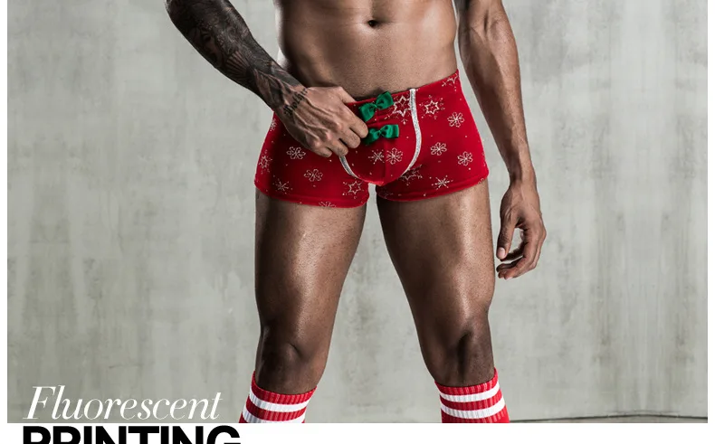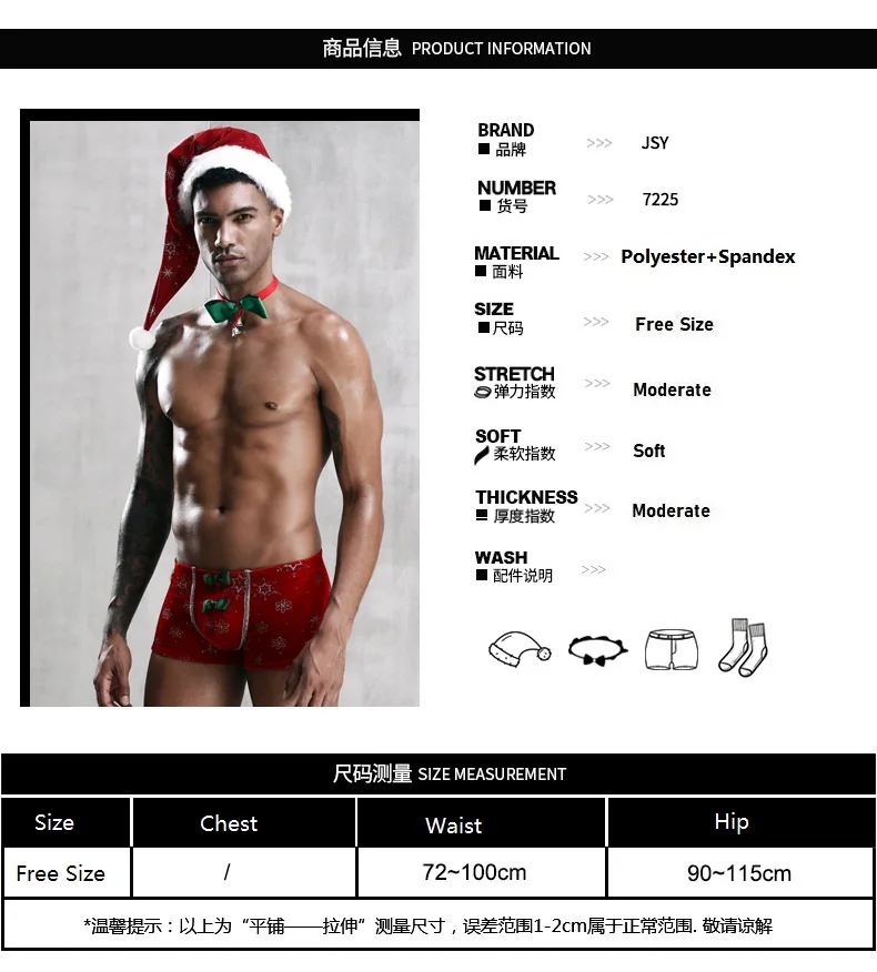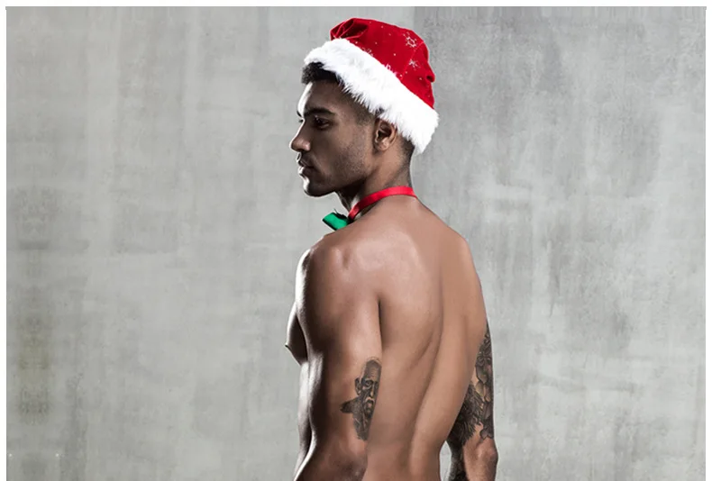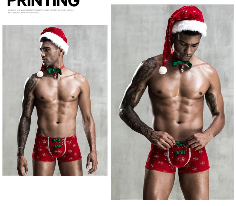 Мужские велюровые праздничные боксеры с шапкой, наряд для рождественской вечеринки, сексуальные ролевые игры, Linderie