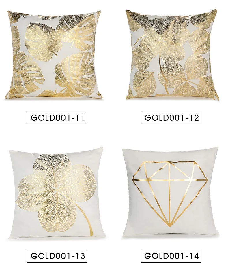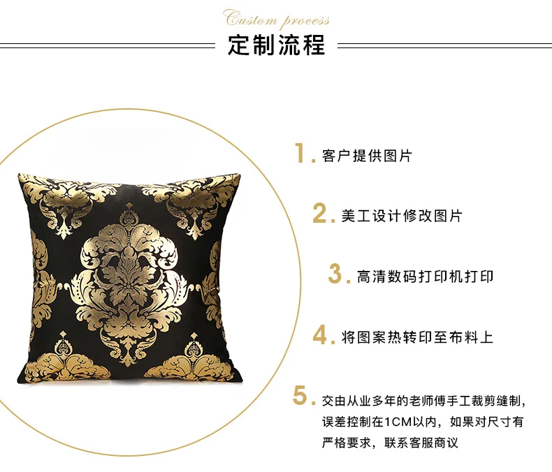 Product Name: single side positioning gilt black and white short plush pillow case Material: short plush Size: 45cm * 45cm Process: screen printing, stamping, digital printing, heat transfer printing, manual sewing The front side is gilding pattern or digital printing plus gilding pattern, and the back is plain cloth color (black or white is consistent with the background color of the front)