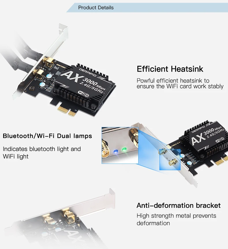 3000 Мбит/с двухдиапазонный беспроводной настольный PCIe для Intel AX200 Pro карты 802.11ax 2,4G/5 ГГц Bluetooth 5,1 PCI Express WiFi 6 адаптер