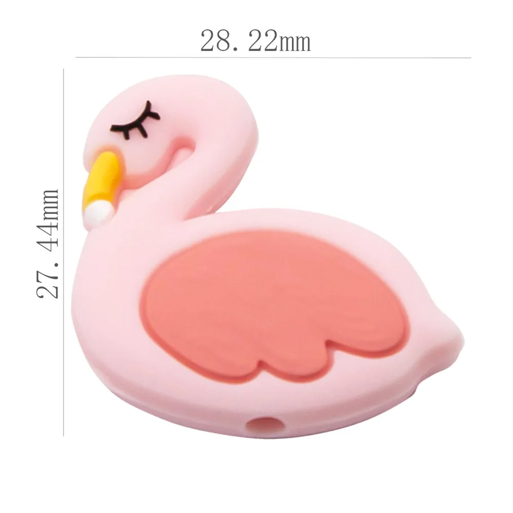 Милая идея 10 шт. мини-прорезыватель для зубов с изображением фламинго, силиконовые бусины для животных, BPA бесплатно для детских игрушек, жевательная цепочка для соски, сделай сам