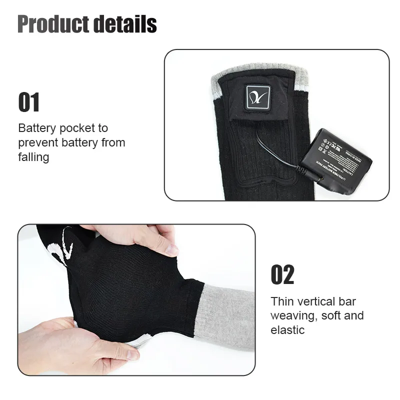 Нагревательные носки модернизированы с инфракрасными нагревательными элементами. Два нагревательных элемента из углеродного волокна, подошвы, ступни и пальцы одновременно нагреваются. Инфракрасный может стимулировать кровообращение ног. Он очень подходит для людей с артритом, плохой циркуляцией, жесткостью суставов и хроническим холодом ног.