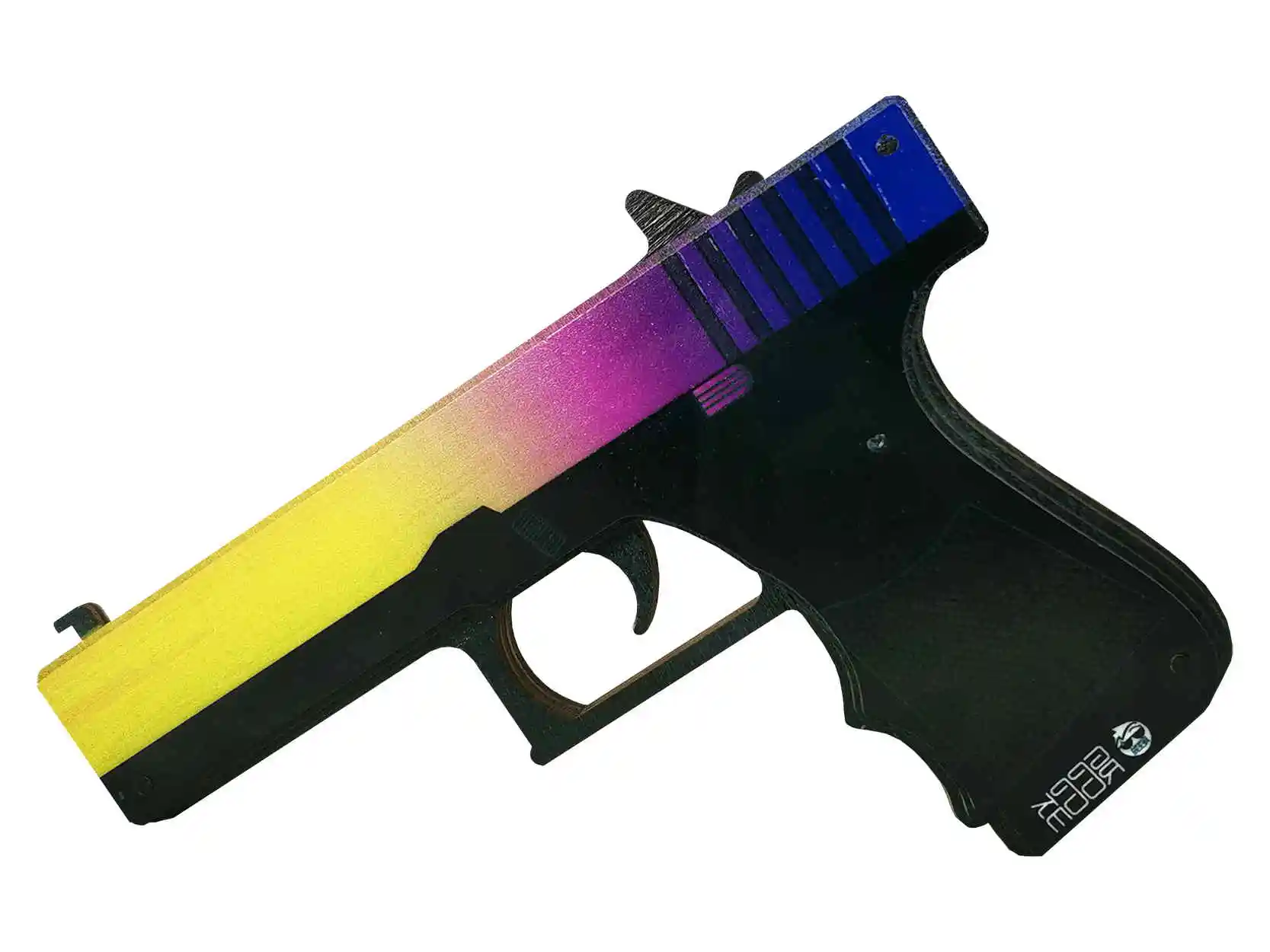 Сувенирный пистолет - Резинкострел Glock в раскраске Градиент из популярной игры Counter-Strike: Global Offensive.