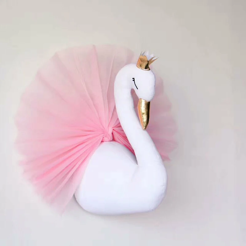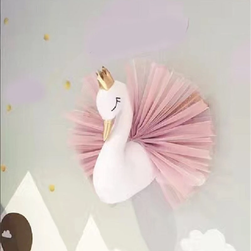 Милая 3D золотая корона Лебедь Настенный дизайн девочка кукла Лебедь мягкая игрушка голова животного Настенный декор для детской комнаты подарок на день рождения и свадьбу
