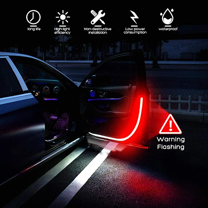 1、Power: 10W 2、Length: 120cm 3、Material: PVC 4、Input voltage: 12V 5、Waterproof rating: IP67 6、Color: white + red 7、Light mode: fast flash mode/streamer mode 8、Installation: Connect the positive and negative poles of the power supply of the door lights without reinstalling the circuit. 9、Application: It can be used for car door warning lights, and also for welcome light decoration Package Included: 1pcs X car lights