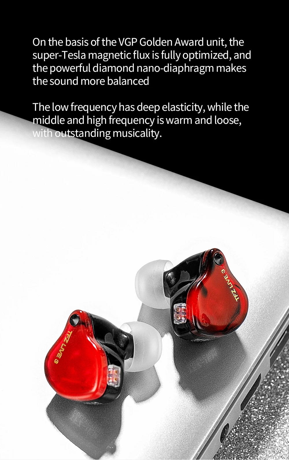 На основе блока VGP Golden Award, магнитный поток super-Tesla полностью оптимизирован, а мощная Алмазная нано-диафрагма делает звук более сбалансированным, низкая частота обладает глубокой эластичностью, В то время как средняя и высокая частота теплые и свободные, с выдающейся музыкальностью.