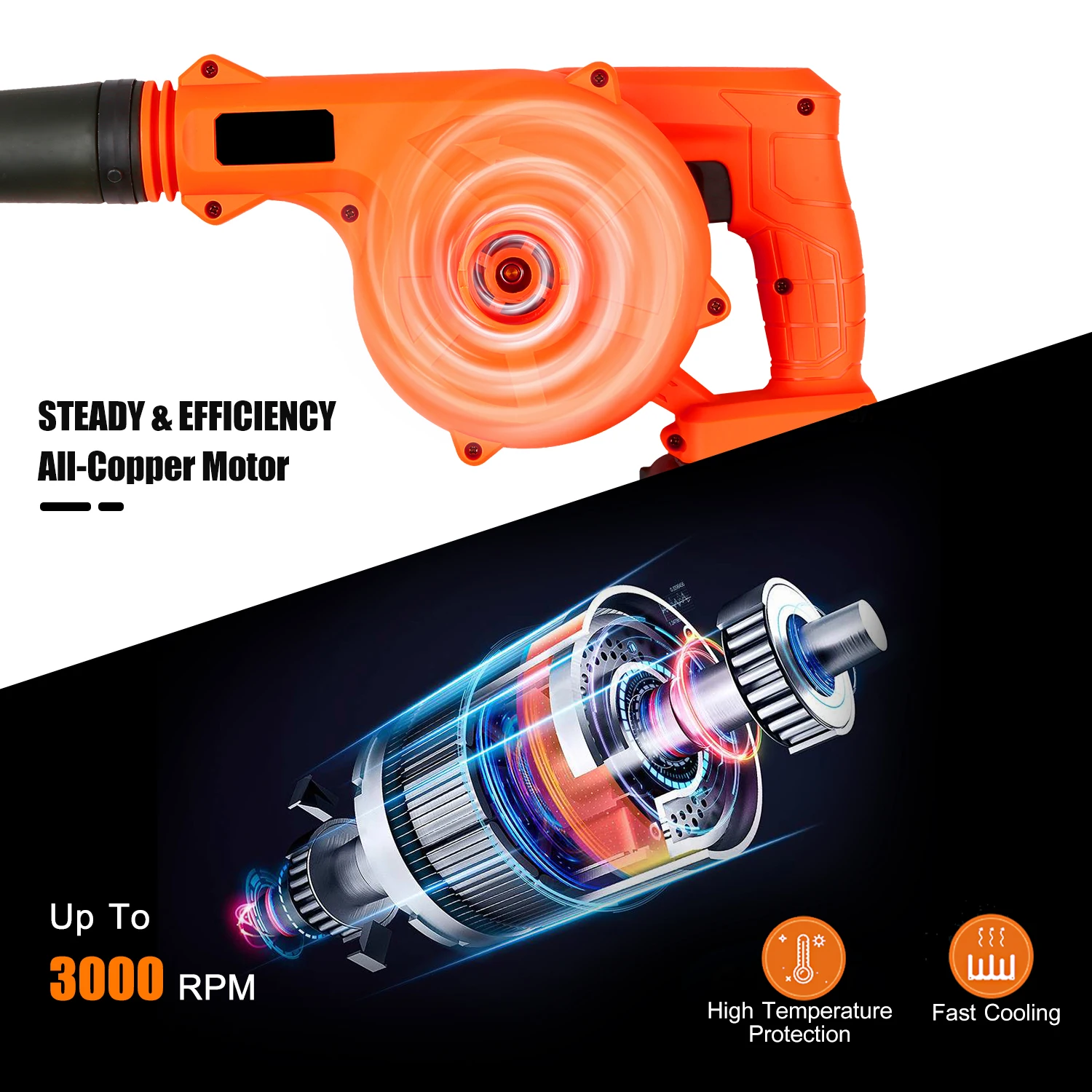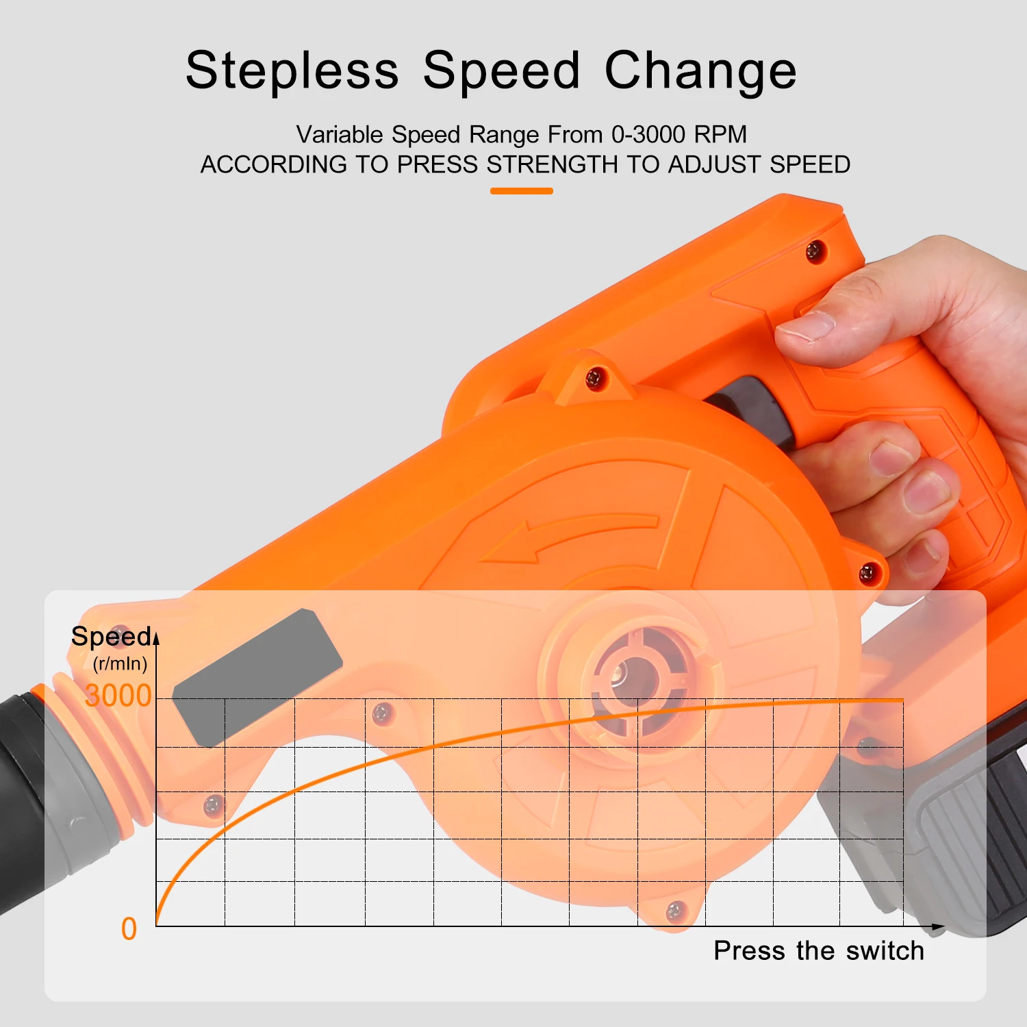 Переменная скорость-плавное регулирование скорости лучше, чем регулирование скорости с несколькими зубчатыми передачами, светильник для продувки небольшого ветра, тяжелого пресса для продувки сильного ветра, вы можете легко контролировать скорость вашего пылесоса от 0-3000 об/мин для очистки пыли, Листьев, снега и т. д.