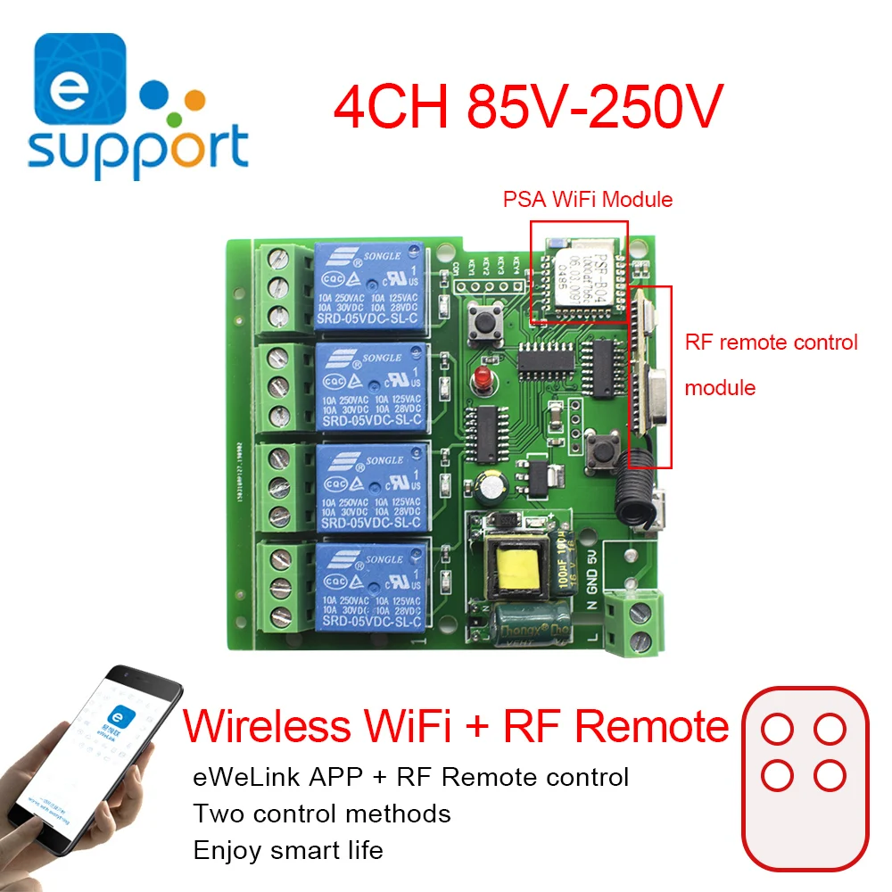 eWeLink Smart Remote Control Wifi wireless DIY Module 1CH/4CH DC5V 12V 32V AC220V Inching Self-locking RF Receive 10A Relays