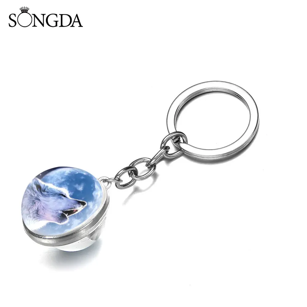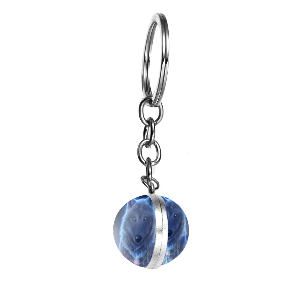 Светится в темноте волк брелок Воющий животное и брелок с лунным камнем кулон двухсторонний светящийся стеклянный шар Wolfs головной брелок