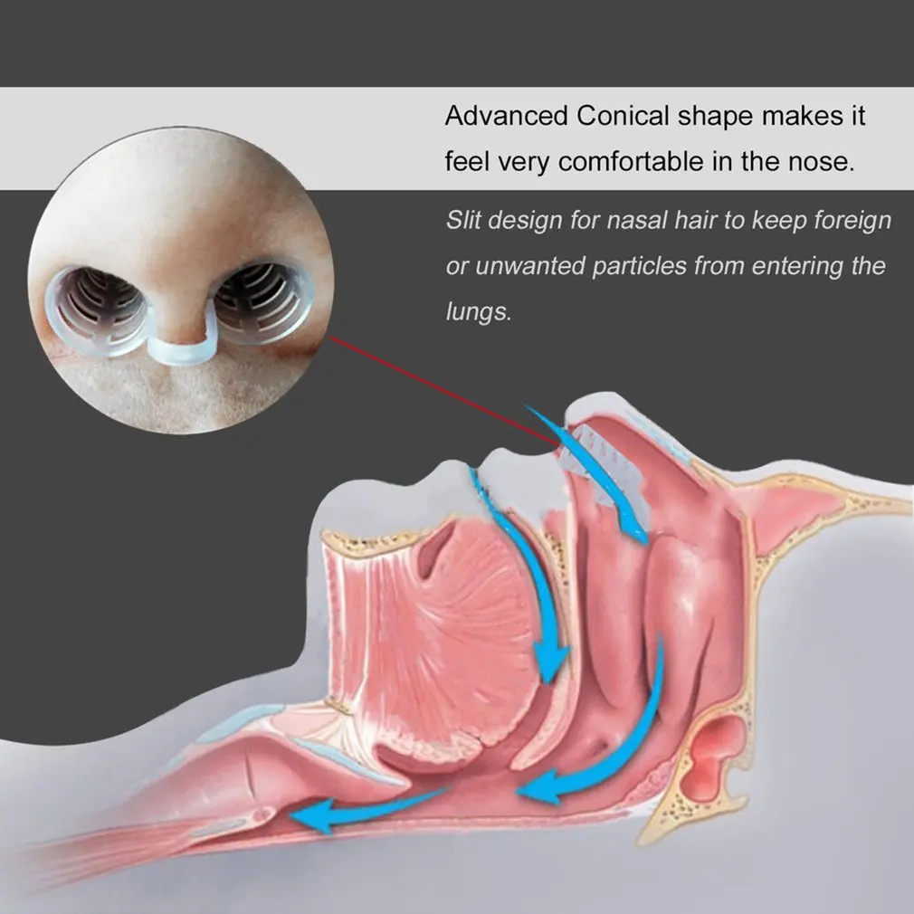 Щелевая конструкция для носовых волос для предотвращения попадания посторонних или нежелательных частиц в легкие.