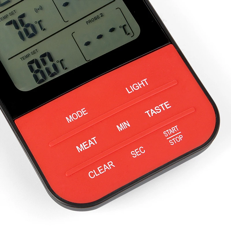 1. Термометр имеет два зонда, которые могут одновременно измерять температуру, устанавливать температуру сигнализации и одновременно обнаруживать сигнал тревоги. Температура будильника может быть установлена свободно, и индивидуальные настройки не будут сброшены при выключении.