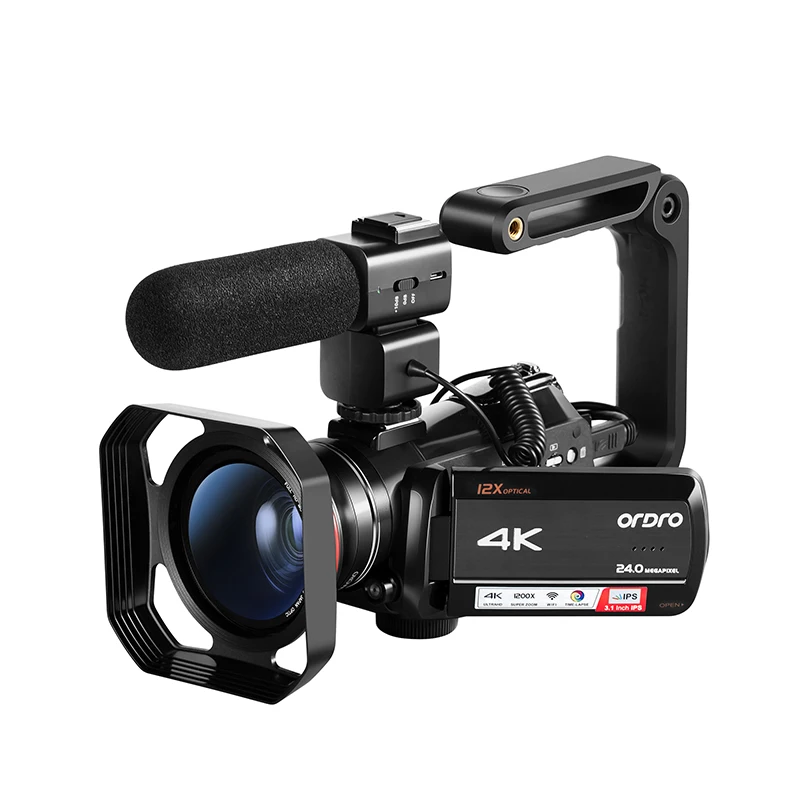 4k камера-Регистратор: с 4K @ 24FPS разрешения UHD и 12x оптический зум, 3,1 дюймов IPS сенсорная панель, ORDRO AC5 видеокамера может выполнять чрезвычайно высокого качества изображения и захватить прекрасный момент. Благодаря эксклюзивному дизайну горячего башмака ac5 может поддерживать внешний микрофон или светодиодный светильник. Wi-Fi дистанционный пульт: видео и фото может быть управлять и общими загрузки приложения (D видео) на смартфон (эффективное расстояние составляет менее 9,8 футов). Поставляется с пультом дистанционного управления, который может использоваться для управления видеокамерой для съемки фотографий и видео на расстоянии менее 16 футов. Советы: при использовании пульта дистанционного управления, пожалуйста, снимите пластиковый лист в нижней части и должны быть удалены широкоугольные линзы. Функция Wi-Fi видеокамеры не поддерживает подключение к маршрутизатору. Поддержка записи видео во время зарядки: видеокамера ORDRO AC5 поддерживает видеозапись s во время зарядки. При записи вы можете использовать usb-кабель для подключения к дополнительному блоку питания для обеспечения длительной мощности. Функция камеры ПК: Поддержка vlog прямой трансляции через программное обеспечение вещателя (например, OBS) В посылка приходит с одним NP-120 3,7 V 1700mAh литиевые батареи и зарядные устройства. В тех случаях, когда использования в первый раз, пожалуйста, зарядите аккумулятор в течение 3 часов для того, чтобы убедиться в том, что был полностью заряжен, он может снимать видео до 1,5 часов. (Советы: время работы аккумулятора сократится в режиме Wi-Fi).