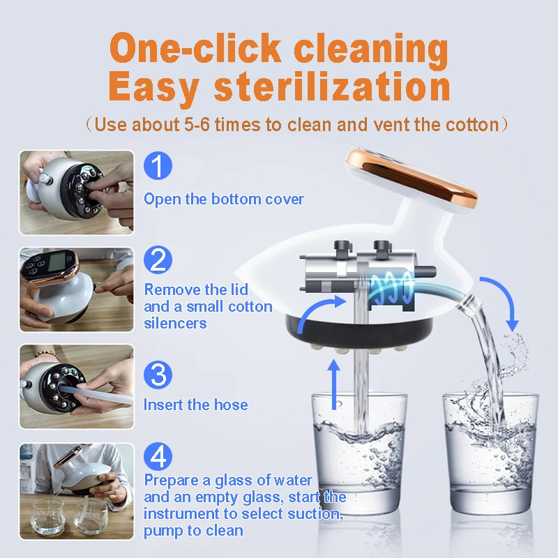 Этот продукт сочетает в себе всасывание отрицательного давления, принцип магнитной волны, снижение температуры и артериального давления, акупрессуру, EMS миоэлектрическую стимуляцию, дальнюю инфракрасную физиотерапию и другие функции. Он может очищать и всасывать, поглощать кислоту и увлажнять, расслаблять дух, регулировать функции, устранять усталость, терять жир и похудеть. Функция затягивания кожи-это новое поколение медицинского оборудования, подходящего для семьи.