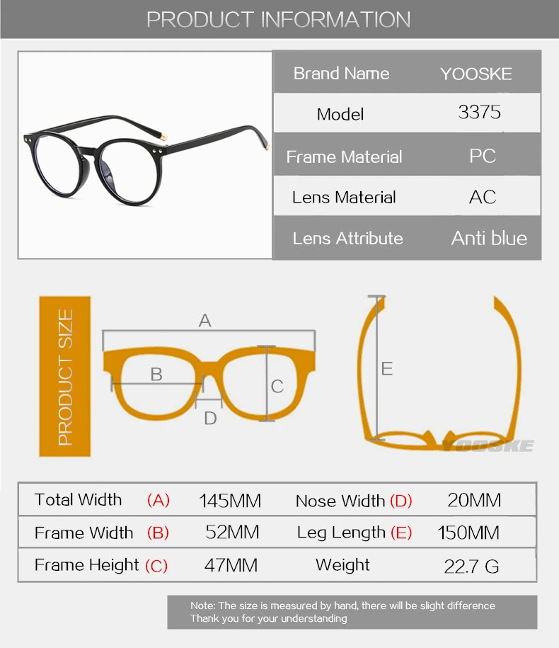 YOOSKE круглые очки для женщин и мужчин, компьютерный анти-синий светильник, оправы для очков, прозрачные оптические поддельные очки для близорукости