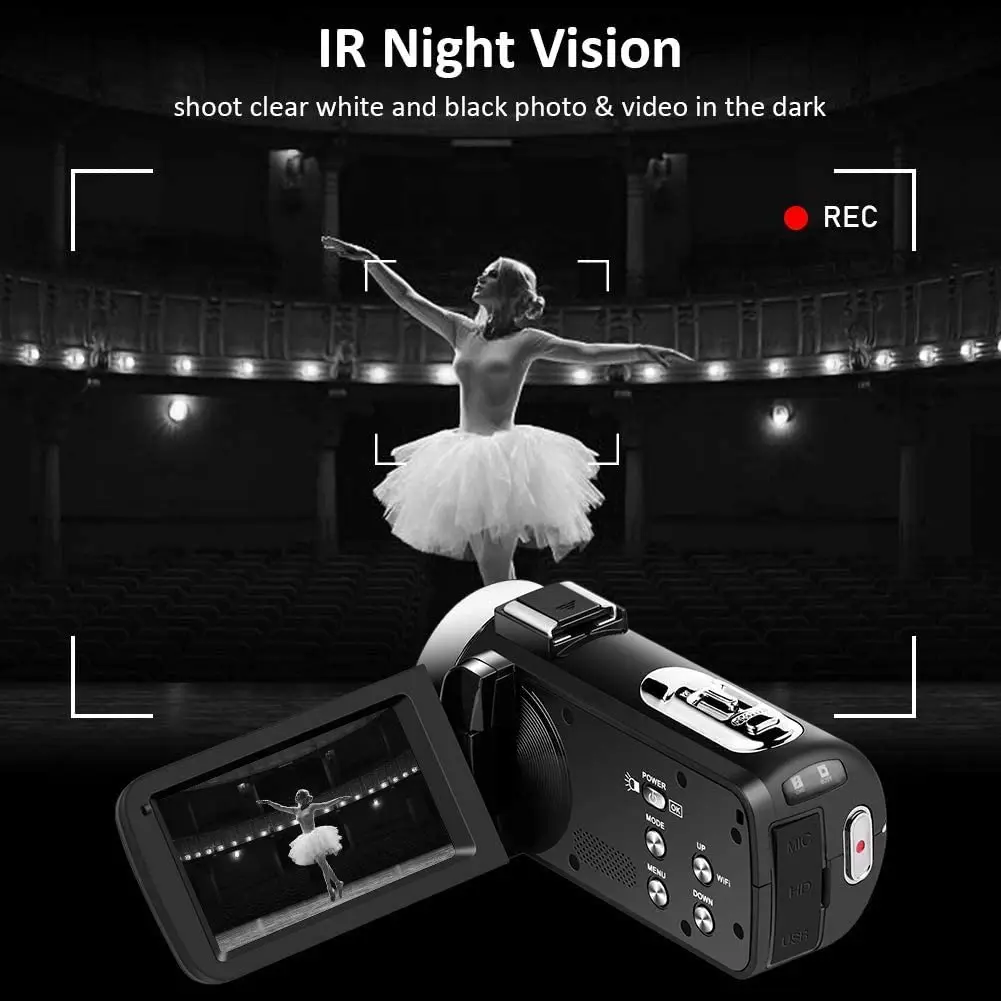 Видеокамера Komery, Новое поступление, 4K, прямая трансляция для Youtube, 48 МП, Wi-Fi, 30X, цифровой зум, 3,0 градусов, сенсорный экран, рекордер, камера