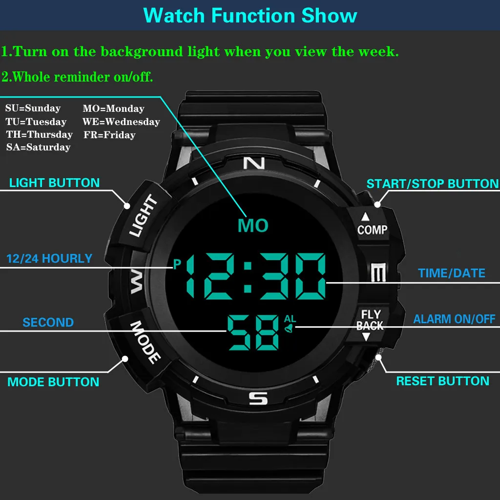 12.A waterproof: this electronic watches for ordinary waterproof, can wash,