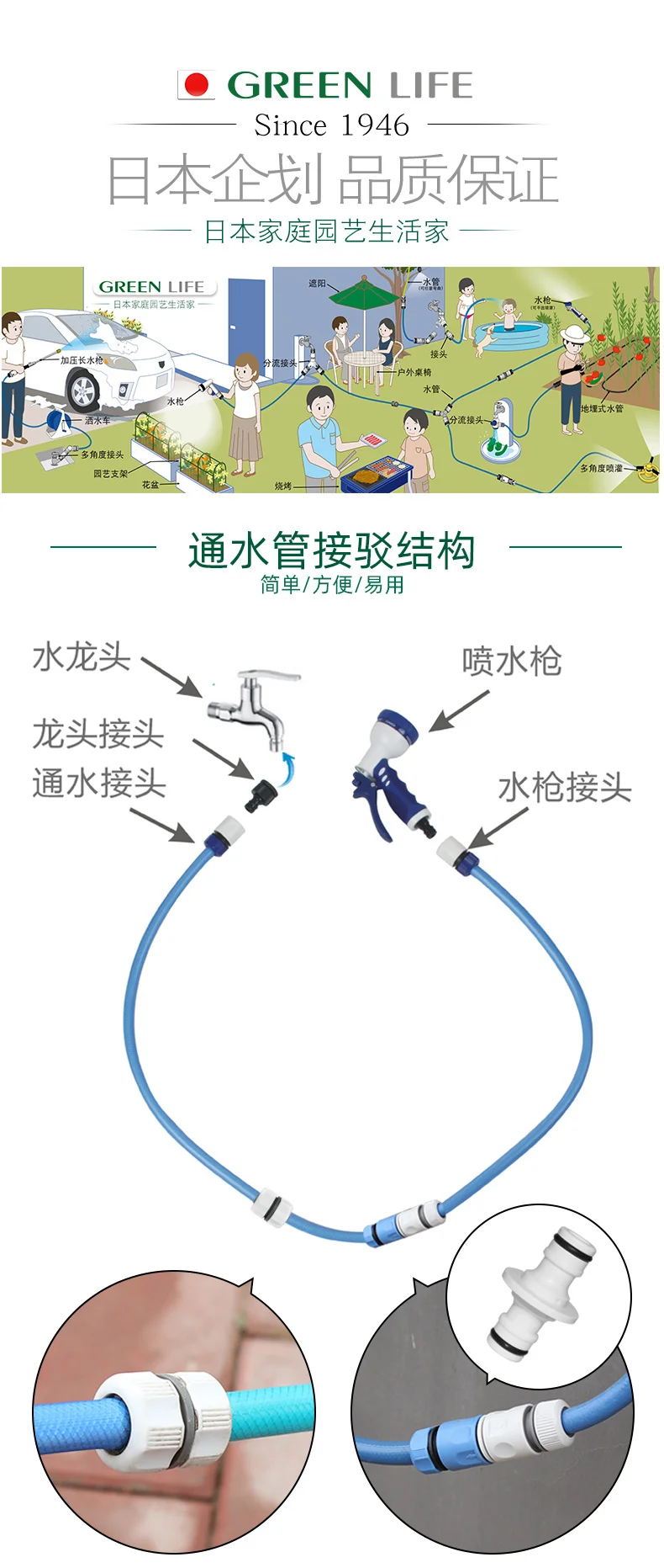 Удлинительный соединитель для шланга, адаптер для водопровода, быстрый Connec для 1/2 дюймового шланга, садового полива, моющего инструмента для автомобиля, G-BOOGE