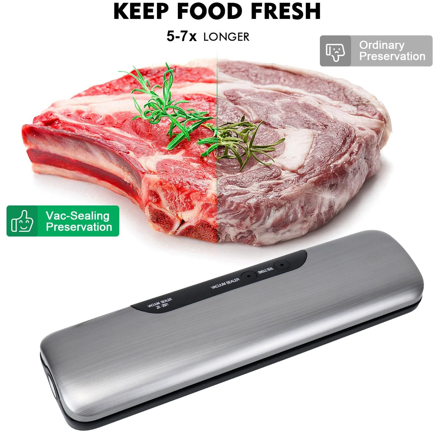 Он может не только вакуумировать любую еду, но и письма, журналы, мягкие игрушки, ювелирные изделия и коллекции. Держите товары свежими в 5 раз дольше с этой вакуумной упаковочной машиной! Благодаря этому ваш холодильник может сэкономить много места.