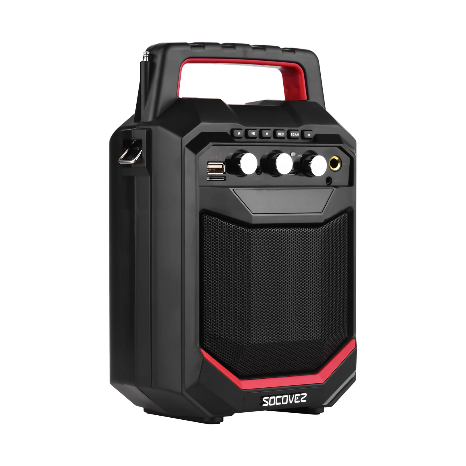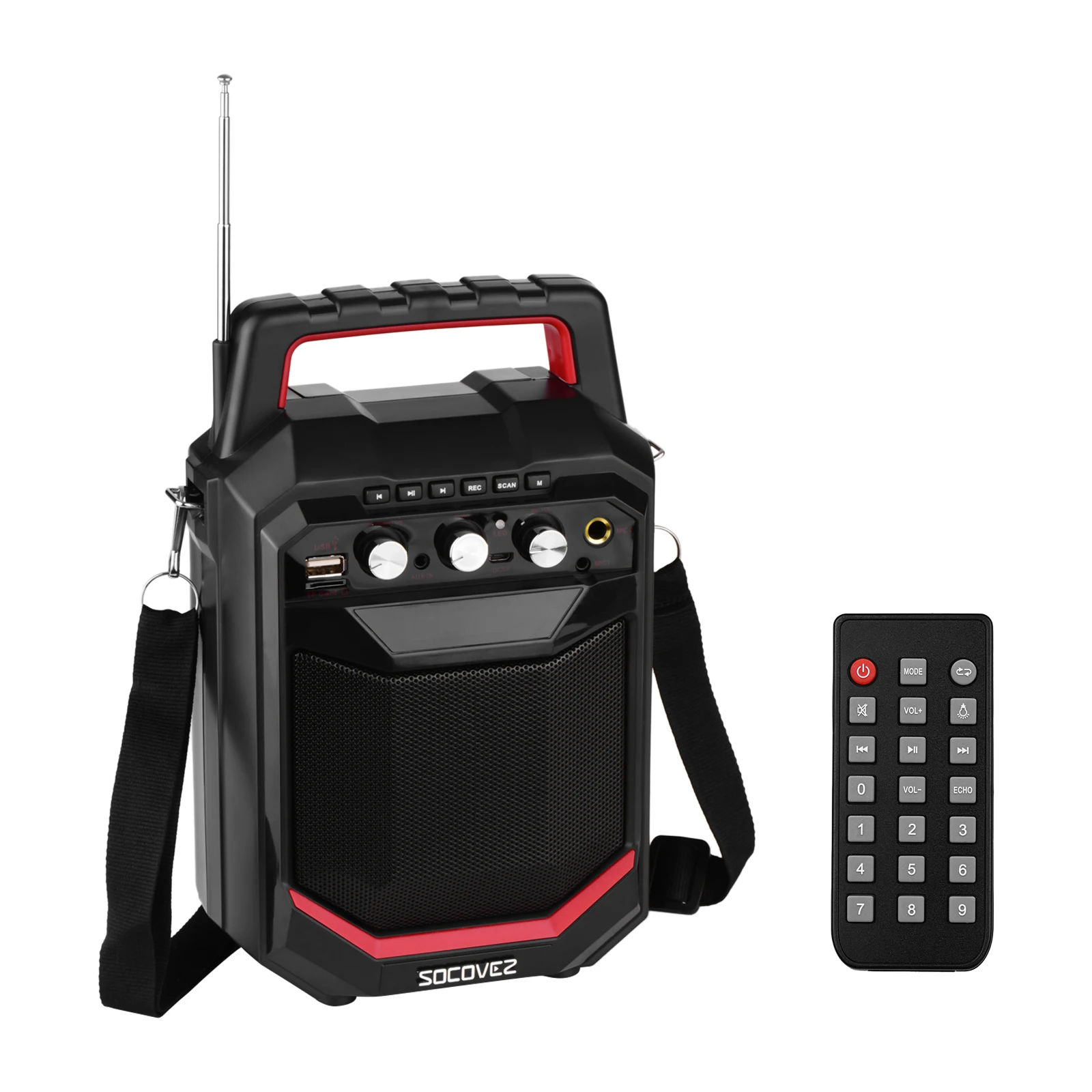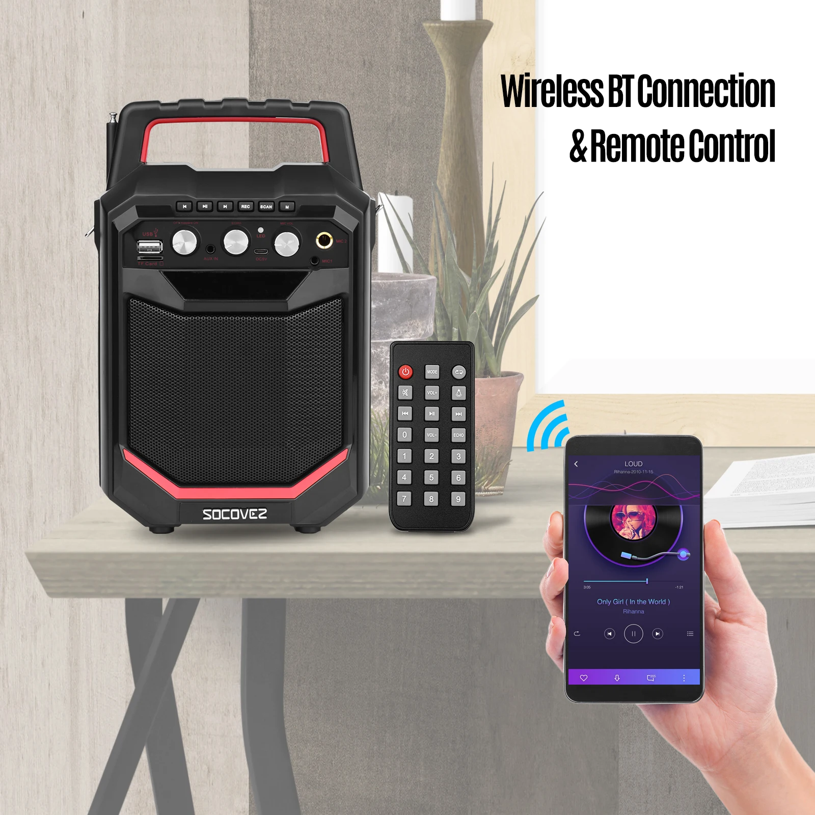 Портативный беспроводной динамик BT:Беспроводной динамик оснащен BT подключением к смартфону и ноутбуку для Max.20W динамической воспроизведения музыки и караоке композиций, портативная ручка и плечевой ремень делают его более удобным.