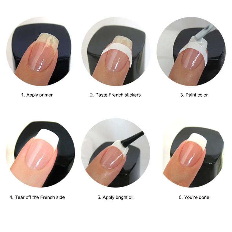 2. Нанесите французские наклейки: необходимо дождаться полного высыхания праймера;
