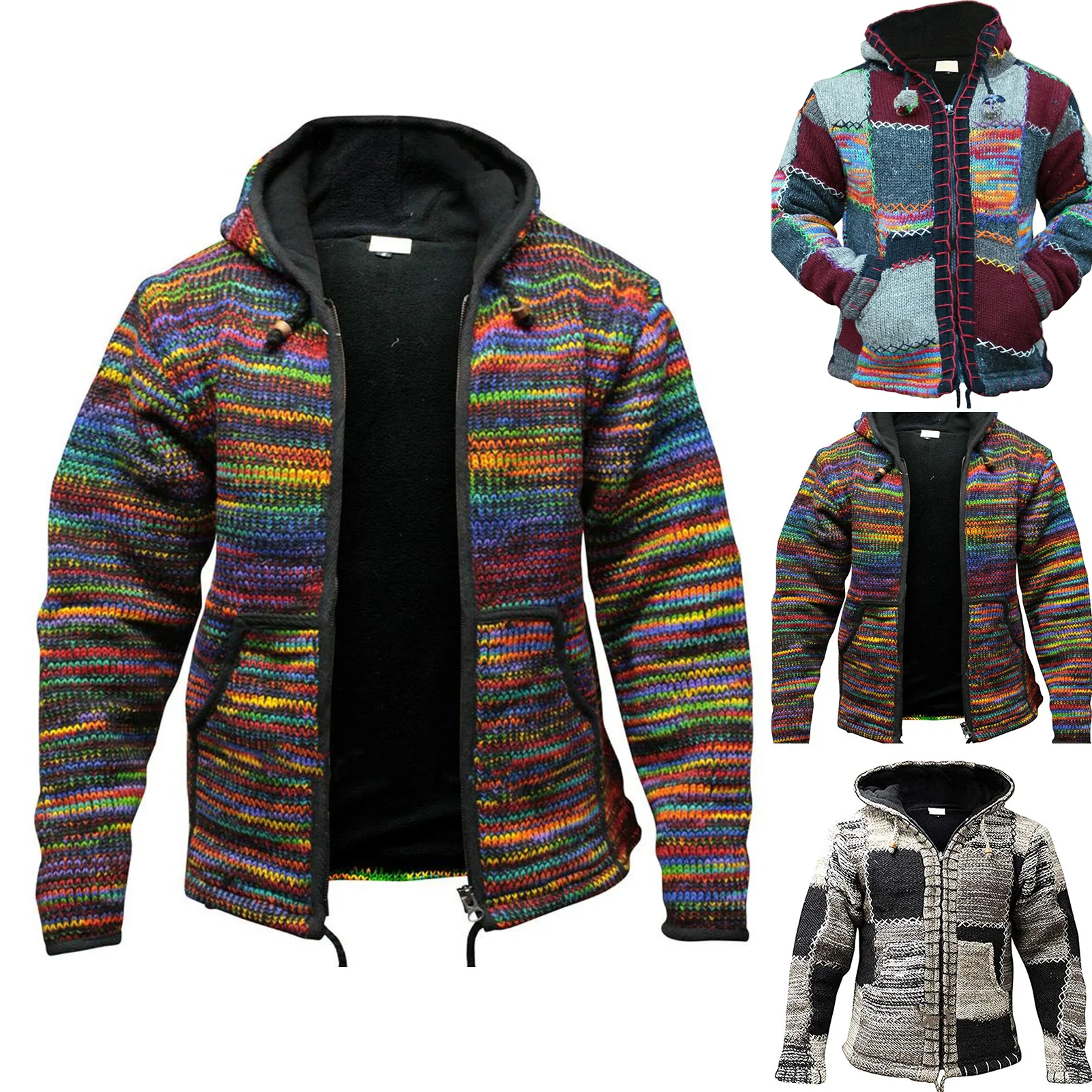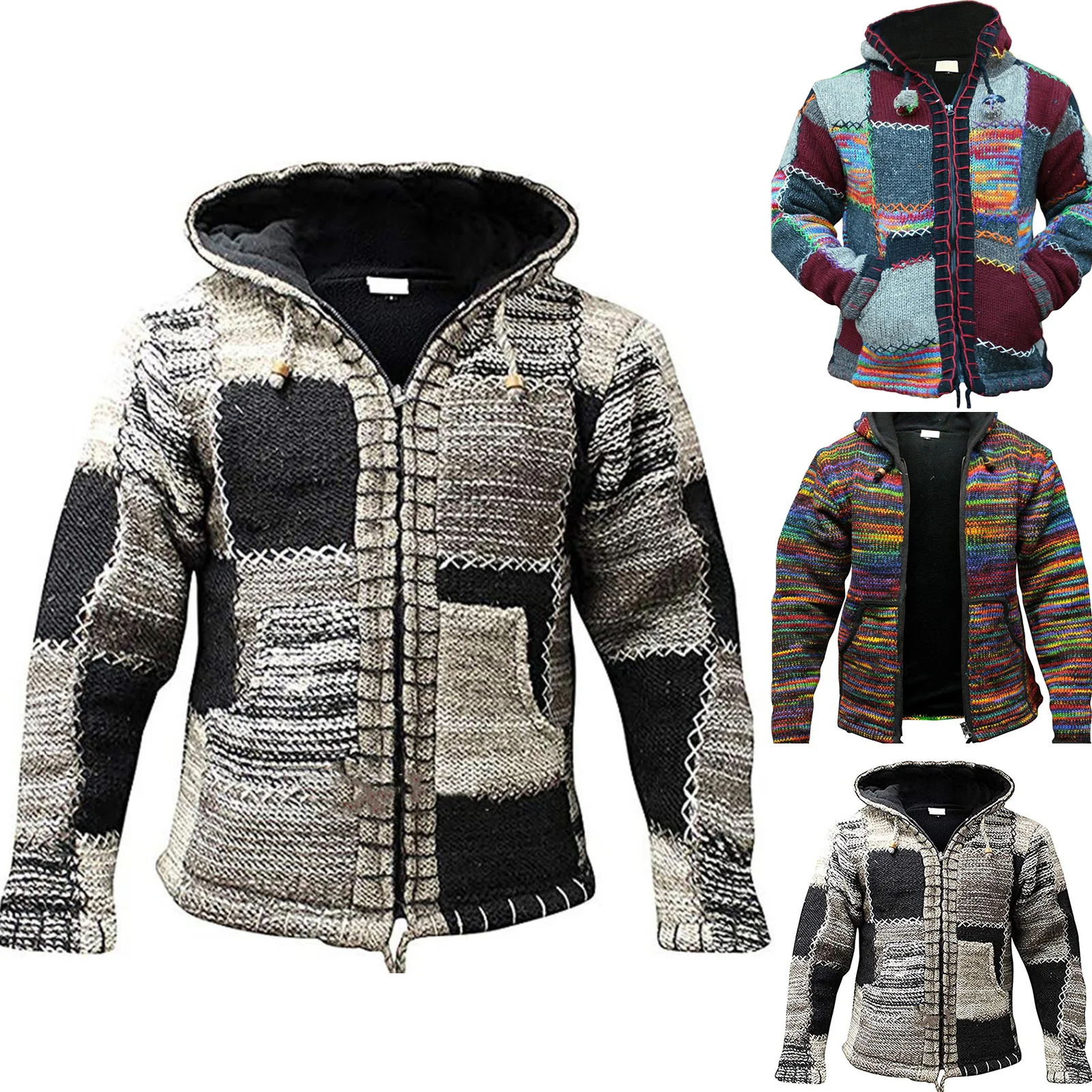 Мужской повседневный кардиган с длинными рукавами в этническом стиле, с карманами, пальто с капюшоном, верхняя одежда