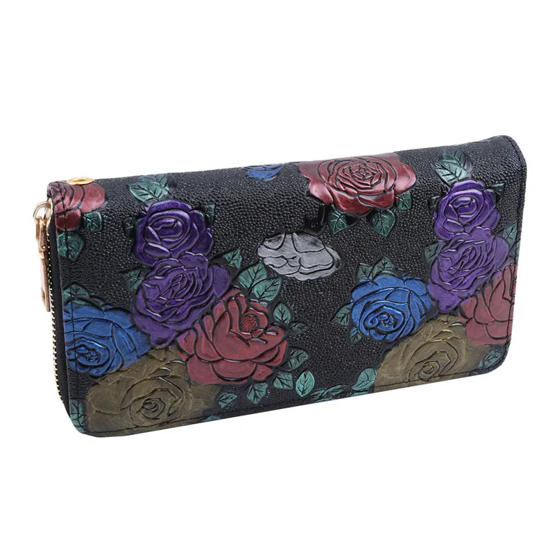 Новый женский длинный кошелек из натуральной кожи с 3D тиснением роза Стрекоза бабочка Дамский клатч большой вместительный женский кошелек на молнии