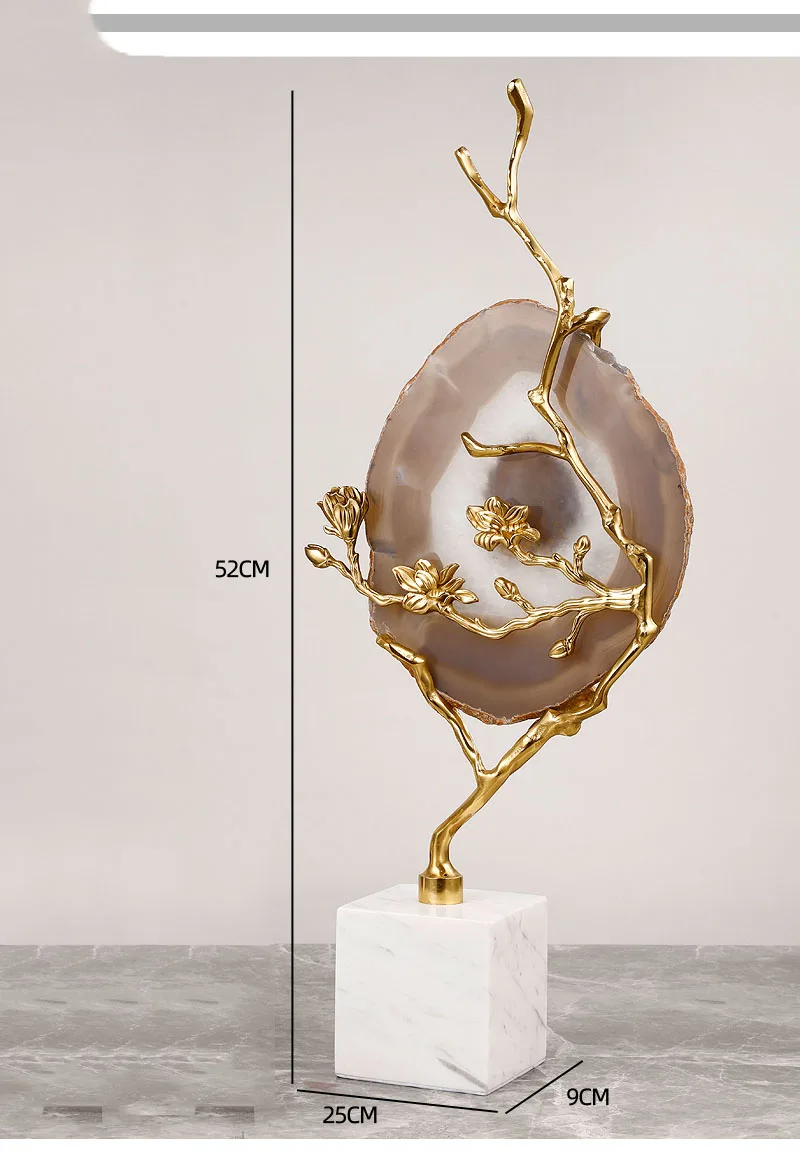Роскошный домашний декор для гостиной аксессуары инкрустация натуральный Агат ломтик латунный сливовый цвет крыльцо современный лобби отеля мягкие украшения