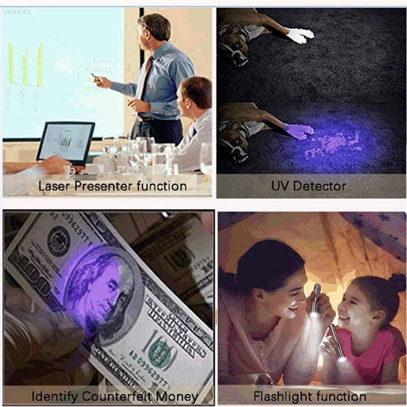 2) 3 в 1 дизайн: Этот светильник имеет 3 режима: светильник, красный точечный, светодиодный светильник и УФ-светильник, он имеет много удовольствия.