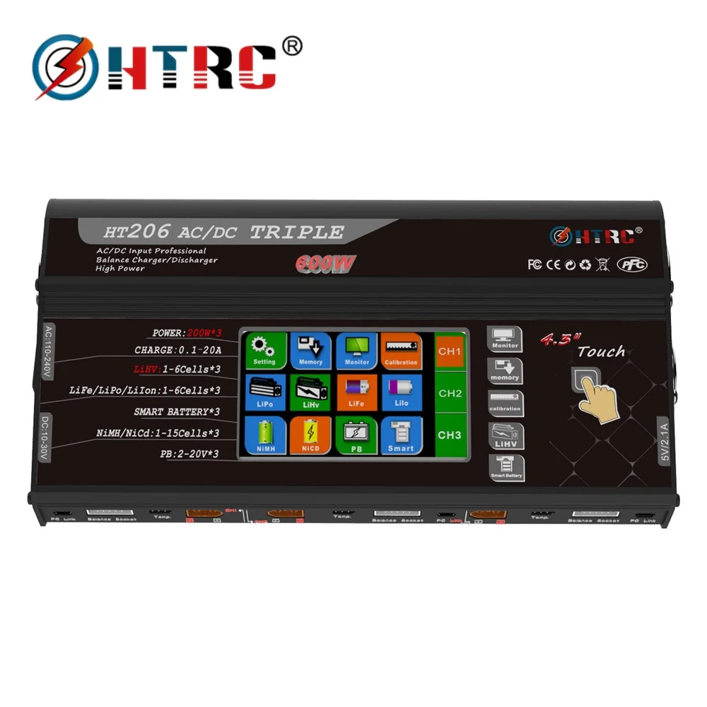 HTRC HT206 TRI RC зарядное устройство AC/DC 200 Вт * 3 20A * 3 тройной порт 4,3 "цветной сенсорный ЖК-экран для батареи Lilon/LiPo/LiFe/LiHV