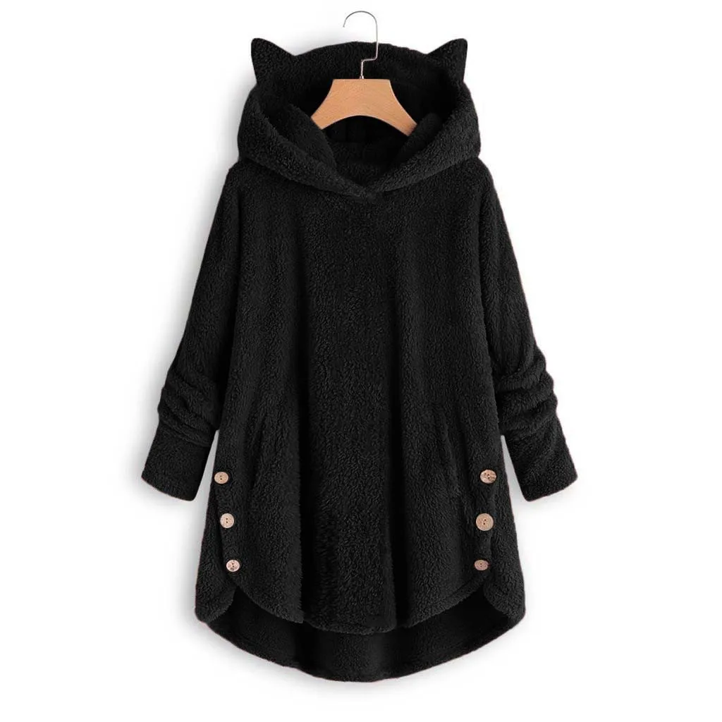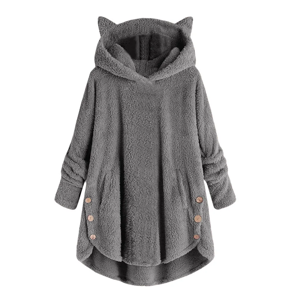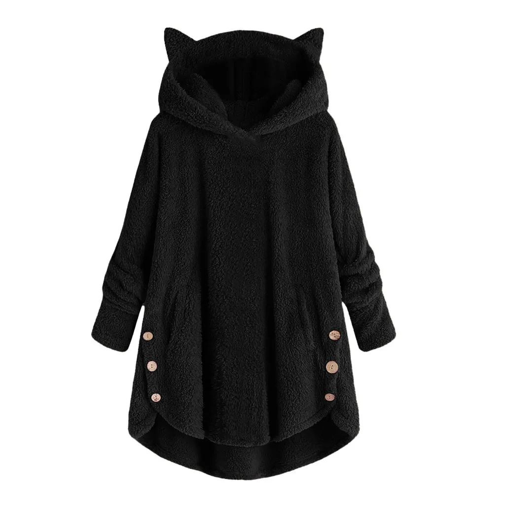 Женское пальто на пуговицах, однотонные топы с капюшоном, пуловер, свободный свитер, блузка размера плюс