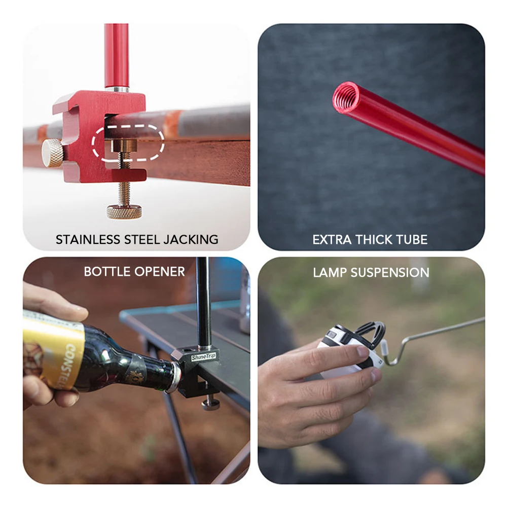 Высота штатива лампы может регулироваться для различных случаев и потребностей, позволяет повесить фонарь на более безопасную и подходящую высоту. Его можно вставить в землю или зафиксировать на рабочем столе. Многофункциональный светильник-подставка отлично подходит для кемпинга на открытом воздухе.