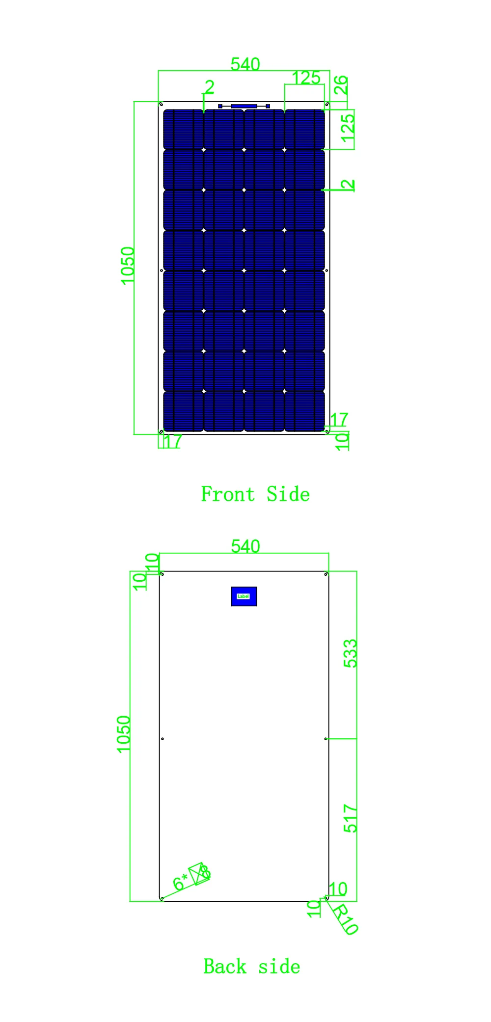 Максимальная мощность (Pmax) 100 Вт Максимальное напряжение системы 700 В постоянного тока Напряжение открытой цепи (Voc) 19,2 в Ток короткого замыкания (Isc) 6.87A Максимальное напряжение питания (Vmp) 16 В Максимальная сила тока (Imp) 6.25A Эффективность батареи 19.5% Рабочая температура (NOCT) 45 ± 2 ℃ Диапазон температур-20 ℃ ~ + 80 ℃ Количество ячеек 32 шт Вес: 2 кг РАЗМЕР 1050*540*3 мм Стандартные условия испытания: lrradiance 1000 Вт/м2, температура 25 ℃,AM = 1,5