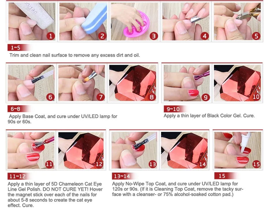 Шаг 4.Нанесите лак напрямую, вылечите УФ-лампой в течение 2-3 минут или вылечите светодиодный светильник в течение 60 секунд; При сушке нанесите 2-й слой и закрепитеУФ-лампаИлиСветодиодный светильникСнова.