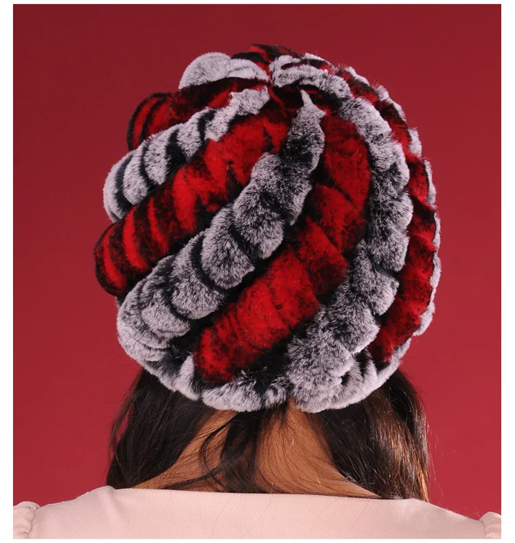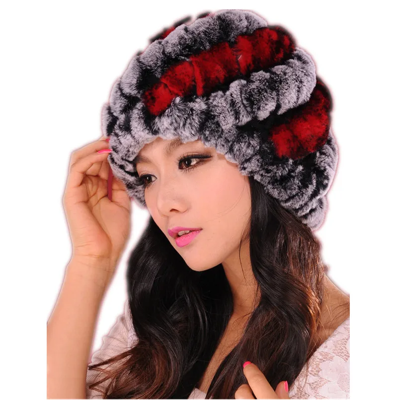 Русская зима Настоящий мех кролика шапка для женщин вязаная Толстая теплая шапка ананас Тип H3