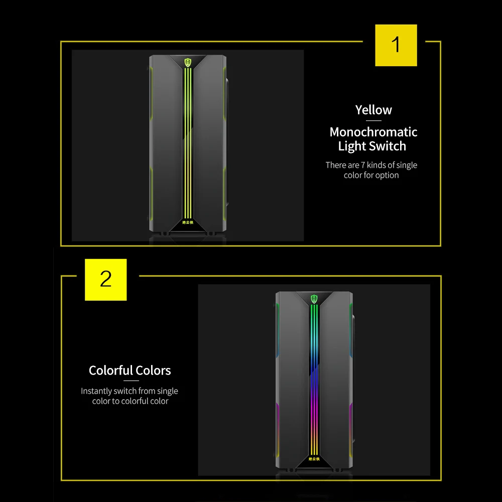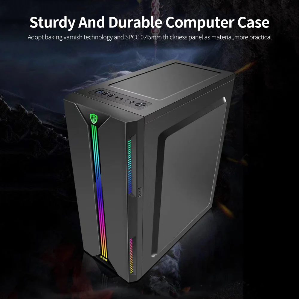 Поддержка ATX,Micro ATX,Mini ITX материнская плата и AMD,Intel. Нет ограничений при установке различных материнских плат. Максимальная длина видеокарты составляет 330 мм, соответствует вашим различным установленным требованиям. Предназначен для игр. Прозрачный дизайн с полным обзором придаст вам крутой визуальный опыт, наслаждайтесь игровой средой. Бронированное стекло эффективно предотвращает появление царапин, защита от пыли сохраняет его чистым и ярким. Используйте панель толщиной 0,45 мм SPCC в качестве материала, прочный и прочный. Один ключ контролирует светильник RGB, есть одиночный светильник и яркий светильник для опции, Переключайте режим светильник случайным образом, если вам нравится. Чехол для компьютера оставляет за собой SSD * 4 и HDD * 2, обеспечивает большую емкость и высокую скорость. Передняя панель поддерживает s три вентилятора охлаждения 120 мм, задняя панель поддерживает s один вентилятор охлаждения 120 мм. Поддержка кулера процессора 160 мм.