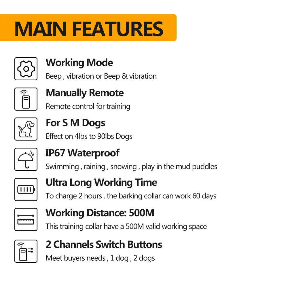 Дистанционный тренировочный ошейник для собак с пультом дистанционного управления 500 yd дистанционный диапазон звука Вибрация без ударов перезаряжаемый и водонепроницаемый