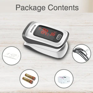 1 х Перемычка Пульсоксиметр 2 батарейки ААА (опционально) 1 х шейный шнур 1 x Руководство по эксплуатации на пяти языках (включая английский/немецкий/французский/итальянский/испанский)