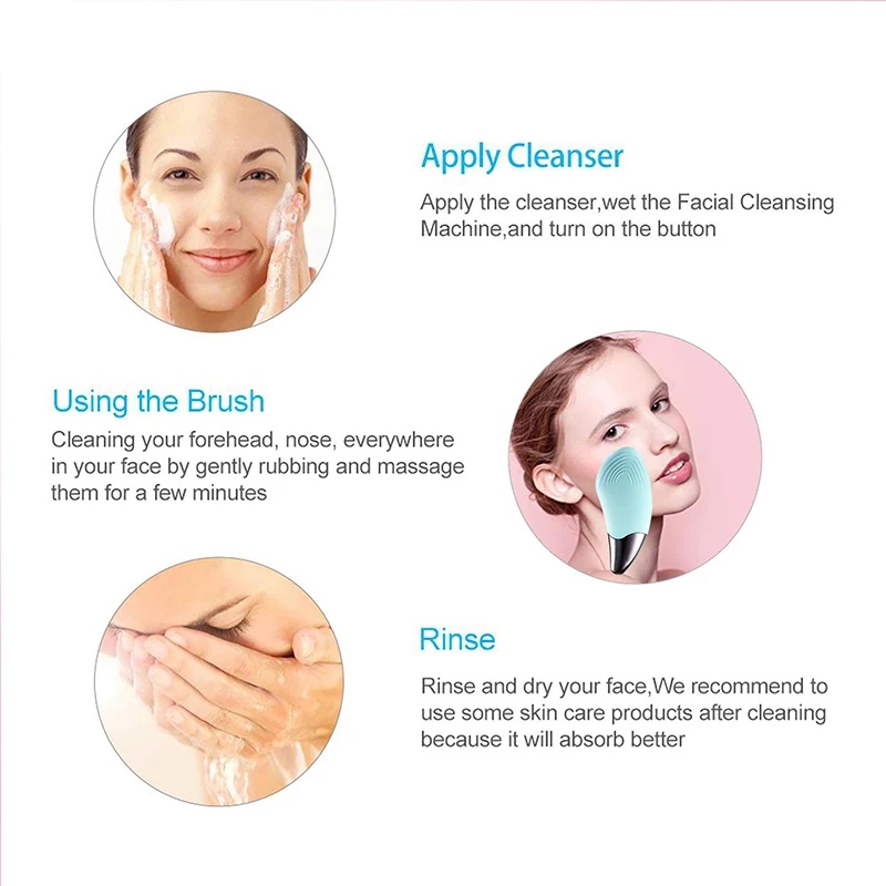 Силиконовая щетка для очищения лица, электрическая звуковая вибрация, массажер для лица, перезаряжаемый водонепроницаемый силиконовый скруббер для лица, щетка для отшелушивания IPX7, Водонепроницаемая силиконовая щетка для лица с 5 скоростями вибрации