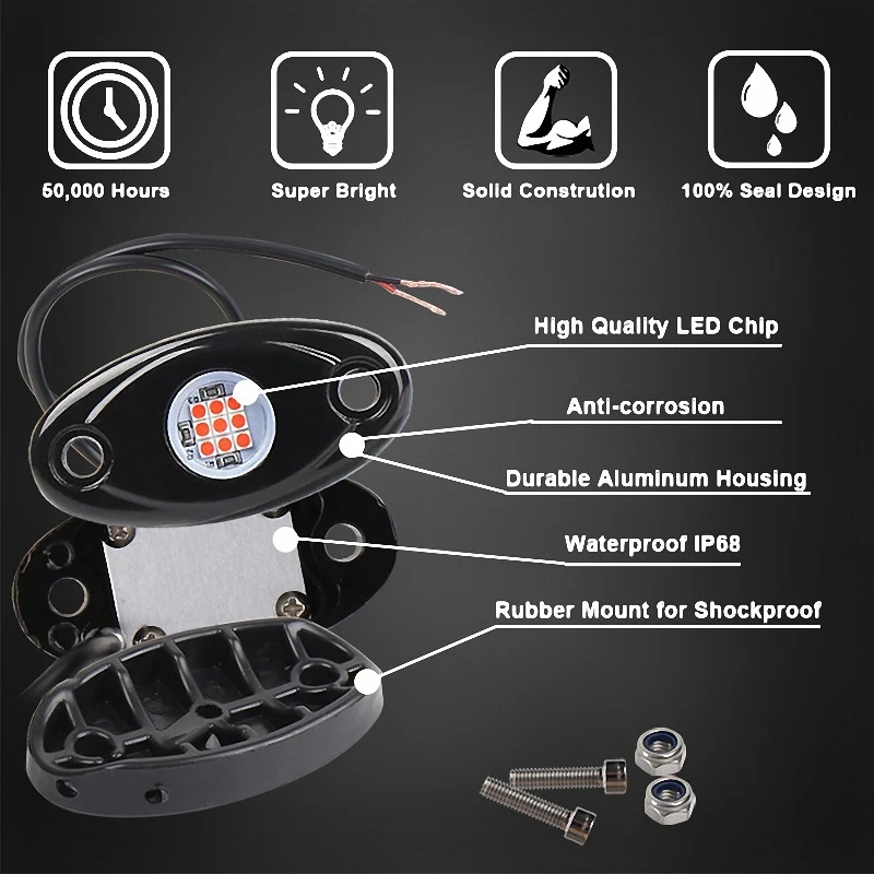 4 накладки светодиодный фары рок комплект Водонепроницаемый Underglow светодиодный неоновый след установка настенные светильники для Jeep Грузовик ATV Raptor Offroad Лодка