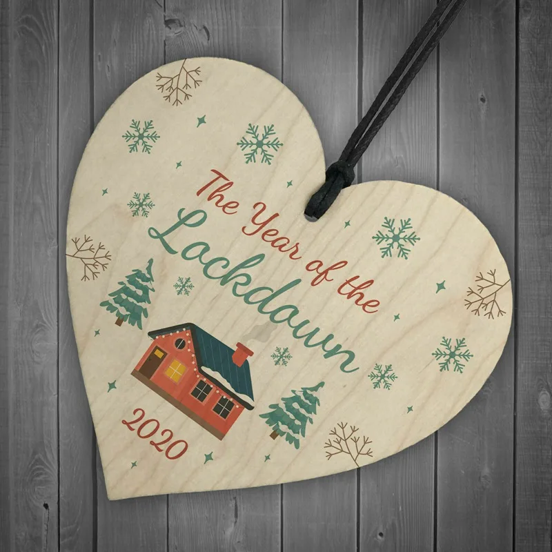 Год блокировки 2021 Деревянная Рождественская елка украшения деревянная доска подвесной в форме сердца Украшение подарок мемориал Новогодний подарок