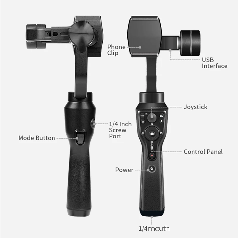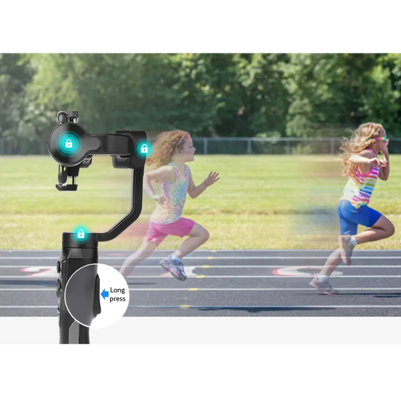 Характеристики: интегрированная панель управления дизайн: Smart S1 разработан с помощью слайдера на панели управления и кнопки триггера на задней панели, чтобы легко распознавать и переключать между различными режимами карданного шарнира. Это может уменьшить необходимость связаться с sn и помочь пользователям контролировать как стабилизатор, так и мобильную камеру непосредственно с помощью кнопок горячего ключа. Имеет кнопки "Vertigo Shot" "POV Orbital Shot" "Roll-angle Time Lapse".