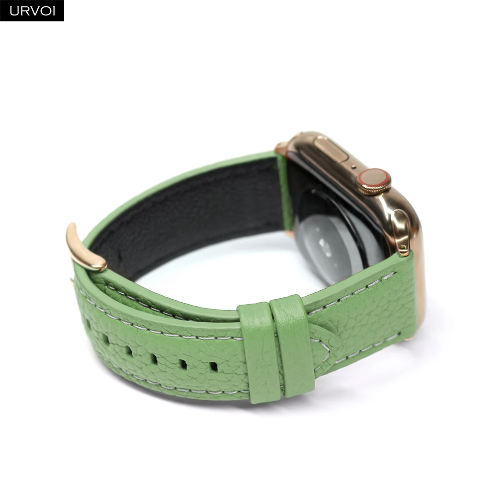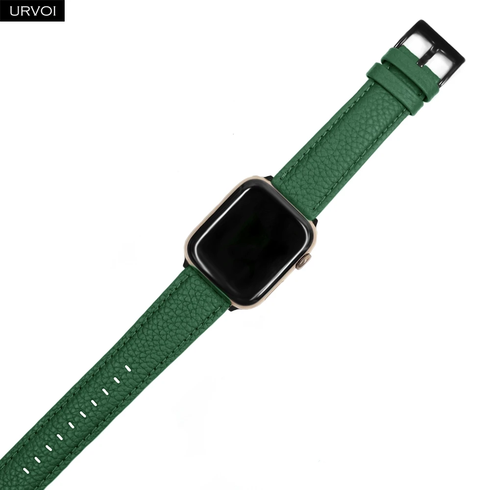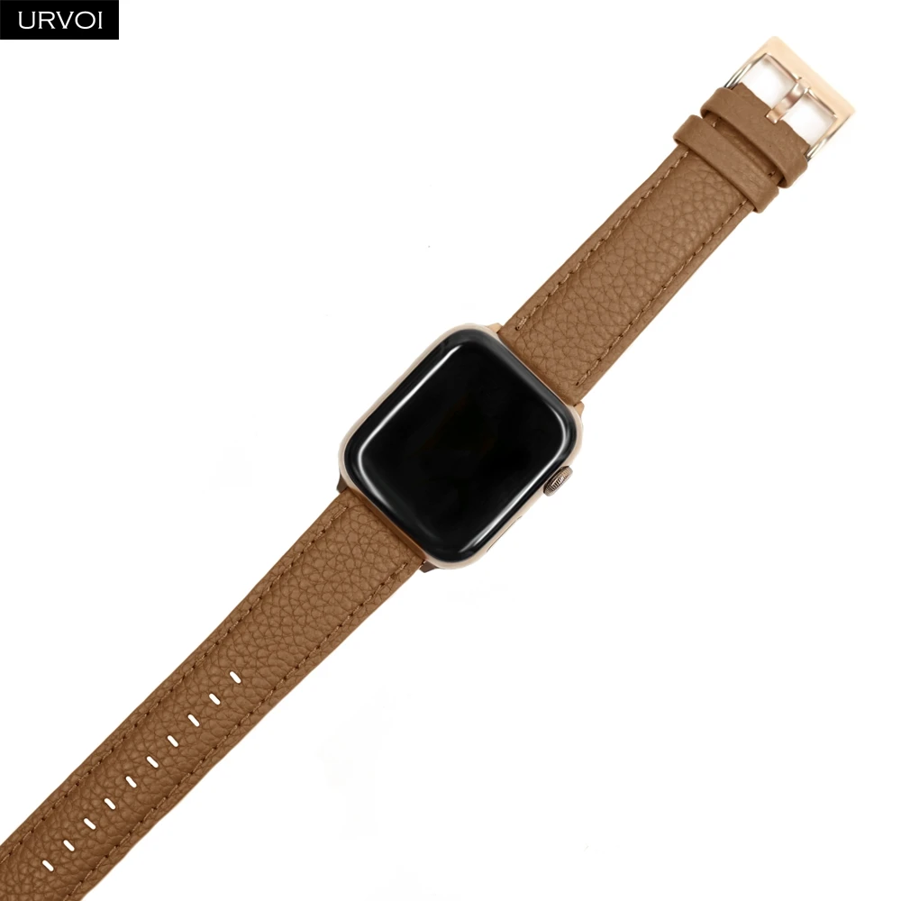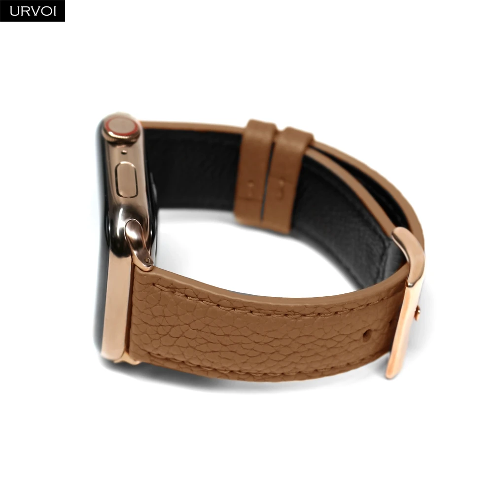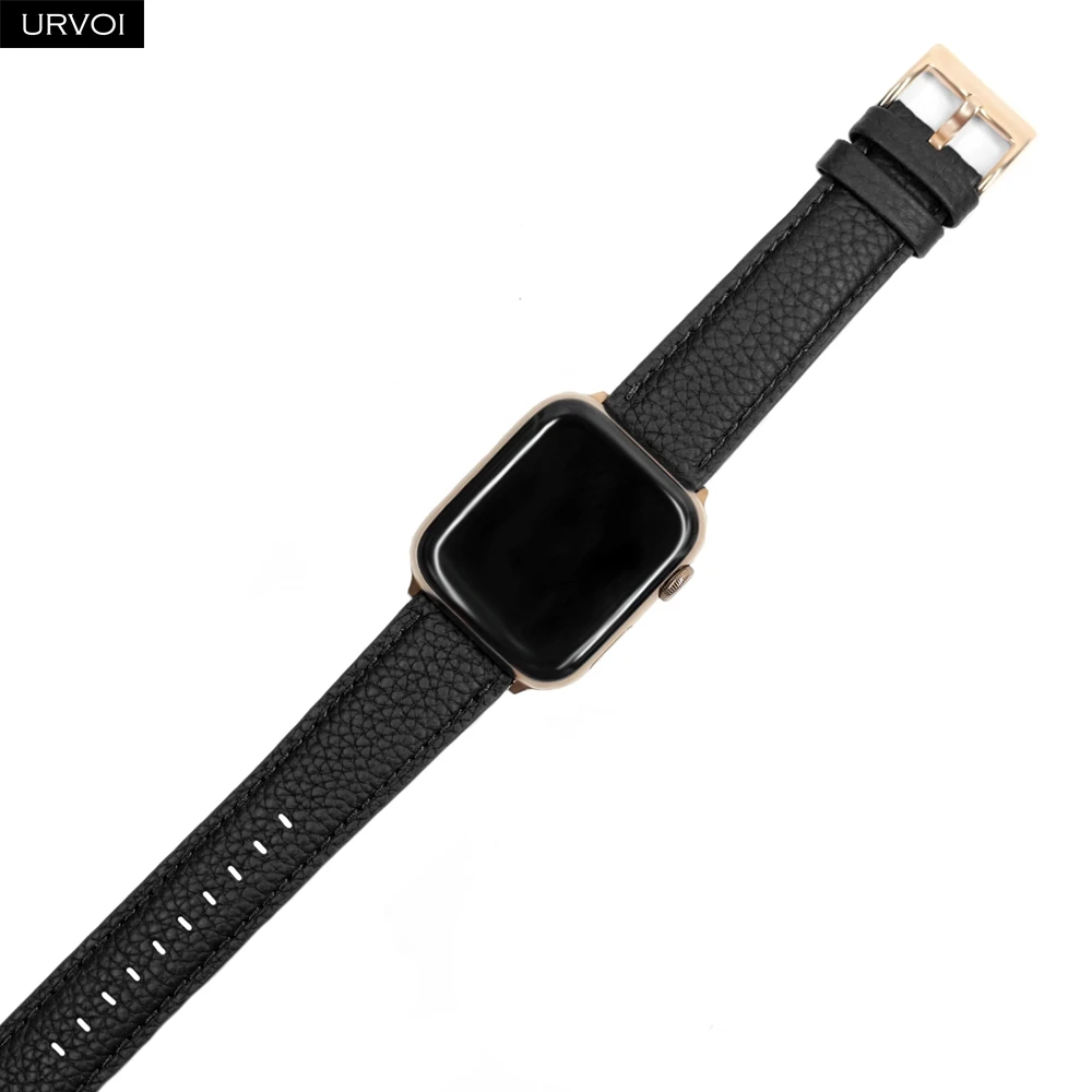 URVOI ремешок для Apple Watch series 6 SE 5 4 3 2 1 натуральная кожа личи для iWatch черная Роза Золотая Пряжка 40 44 мм