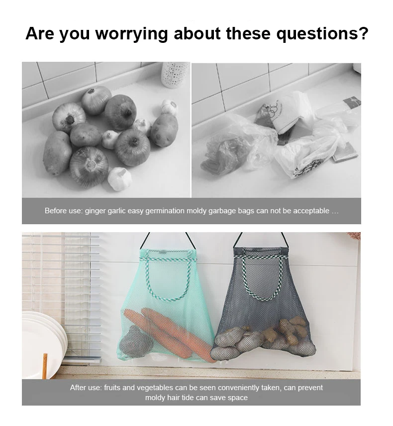 Контур продукта: полый дизайн, дышащая вентиляция, можно хранить лук чеснок или фрукты и овощи