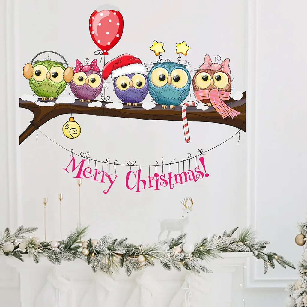Christmas-dressed Owl On A Tree Branch Wall Stickers Wall Window Christmas