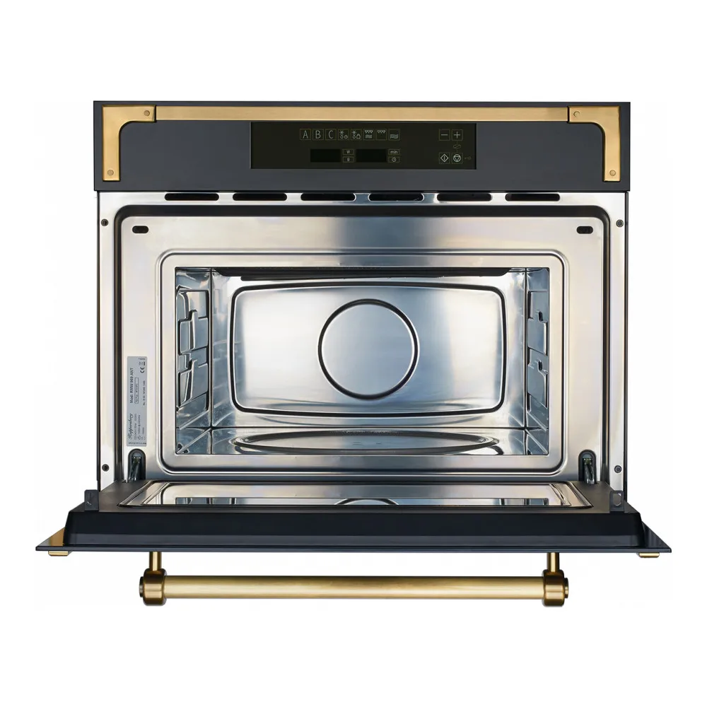 Элегантная микроволновая печь Kuppersberg Rmw 969 Ant в стиле кантри станет изюминкой для любого кухонного интерьера. Микроволновая печь имеет двенадцать режимов приготовления, три из которых можно занести в память прибора. Прекрасными дополнениями у данной модели являются полностью сенсорная панель управления, удобная откидная дверца и галогенное освещение. А уникальный дизайн с бронзовыми рамками по периметру и удобная ручка не оставят равнодушным любого пользователя.