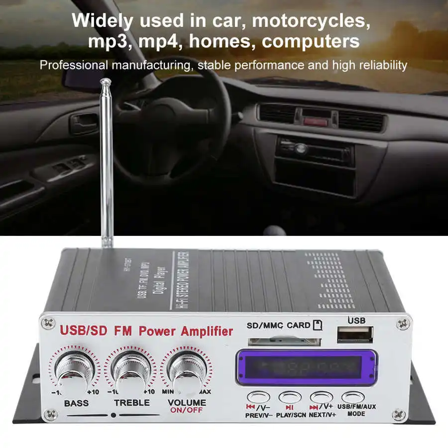 1. Bluetooth Hifi стерео мини-усилитель, высокое качество звука, с высокими частотами, басами и регулятором громкости.2. С перегрузкой, коротким замыканием, функцией защиты от перегрева.3. Широко используется в автомобилях, мотоциклах, mp3, mp4, домах, компьютерах.4. Профессиональное производство, стабильная производительность и высокая надежность.5. Тонкая работа, обеспечивает хороший опыт использования.Спецификация: