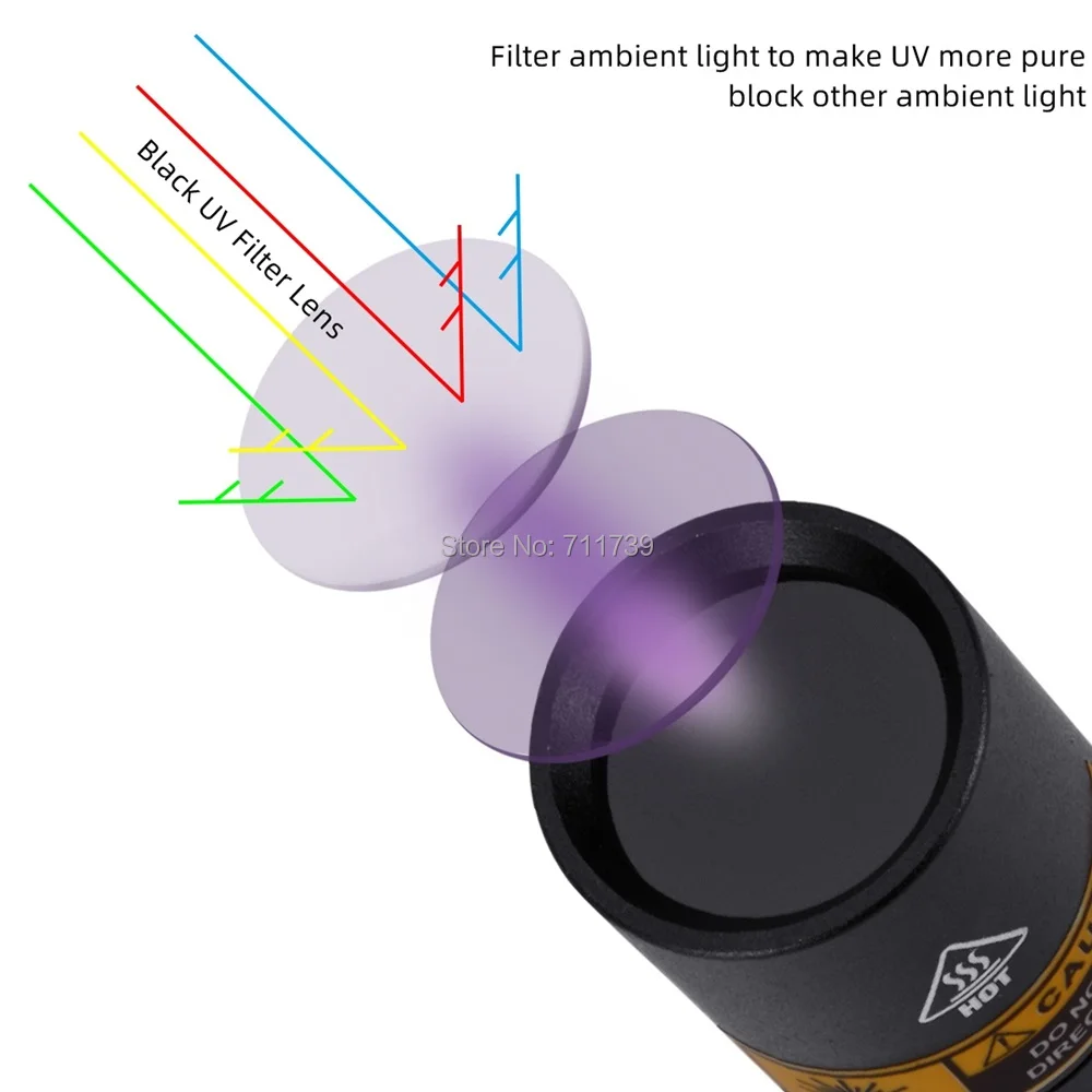 USB Перезаряжаемый 365нм УФ-фонарик с черным фильтром