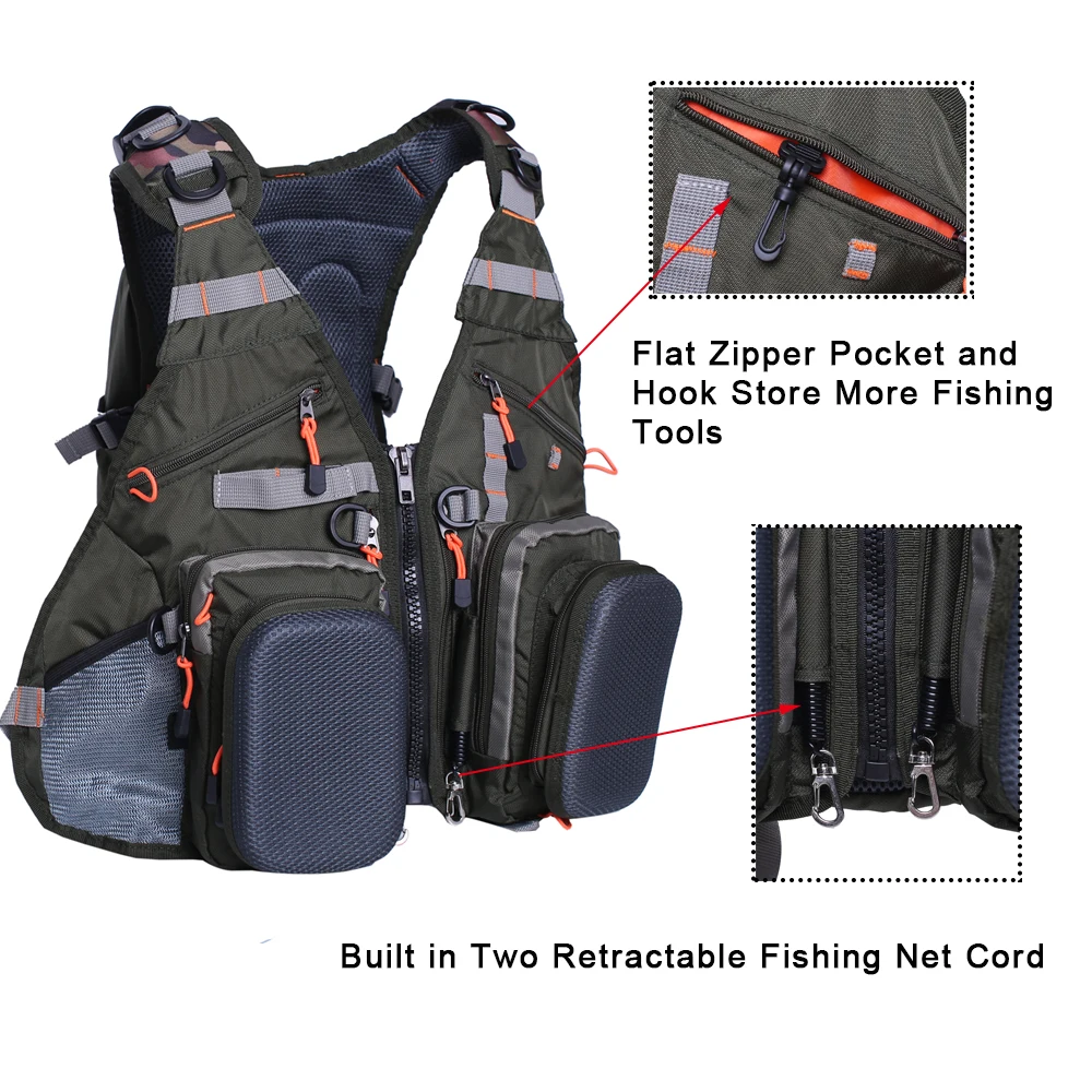 【Легкий и комфортный 】 этот рыболовный жилет сочетает в себе как традиционный рыболовный жилет, так и рыболовный рюкзак, чтобы обеспечить всю функциональность, которая вам когда-либо понадобится в любой поездке на рыбалку! Жилет для ловли форели весом всего 33 унции, он изготовлен из легкой дышащей ткани. Сетчатая задняя часть обеспечивает свободный поток воздуха, поэтому вы можете оставаться прохладными и сухими. Особенно в жаркую погоду.