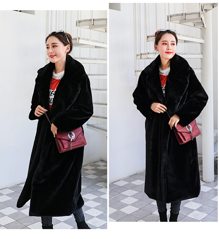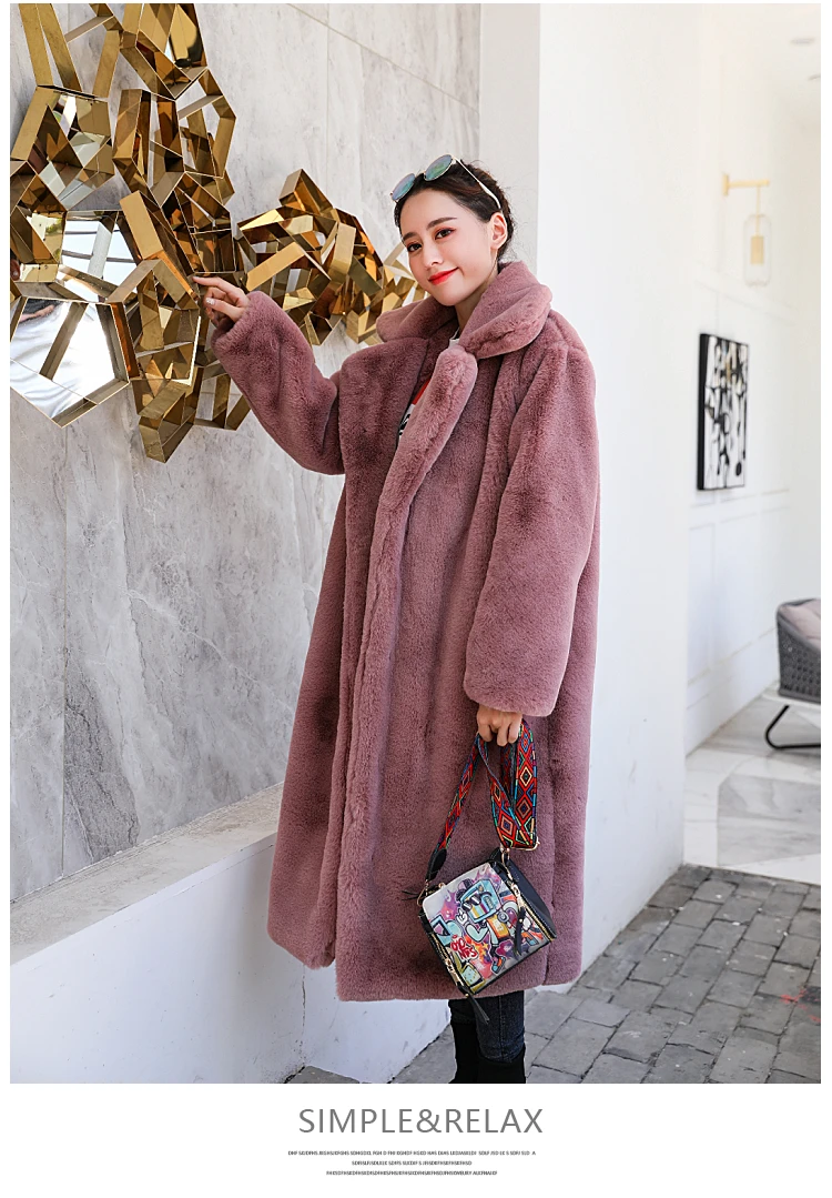Пальто из искусственного кроличьего меха, 1 зимнее длинное Норковое Пальто, женское Свободное пальто, роскошное утолщенное теплое пальто большого размера, женское плюшевое пальто DC775 <